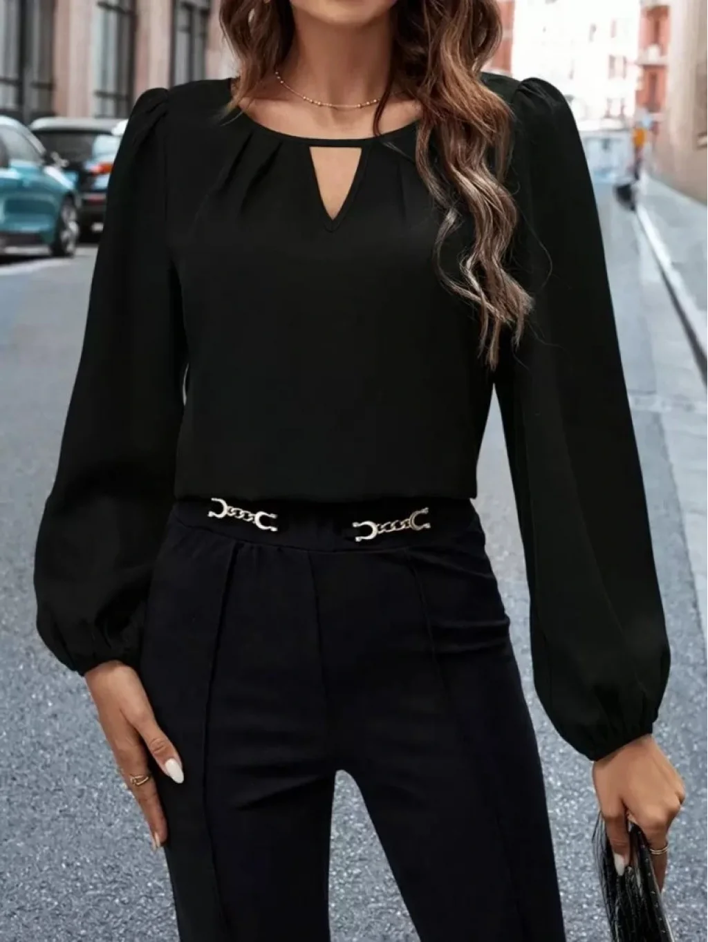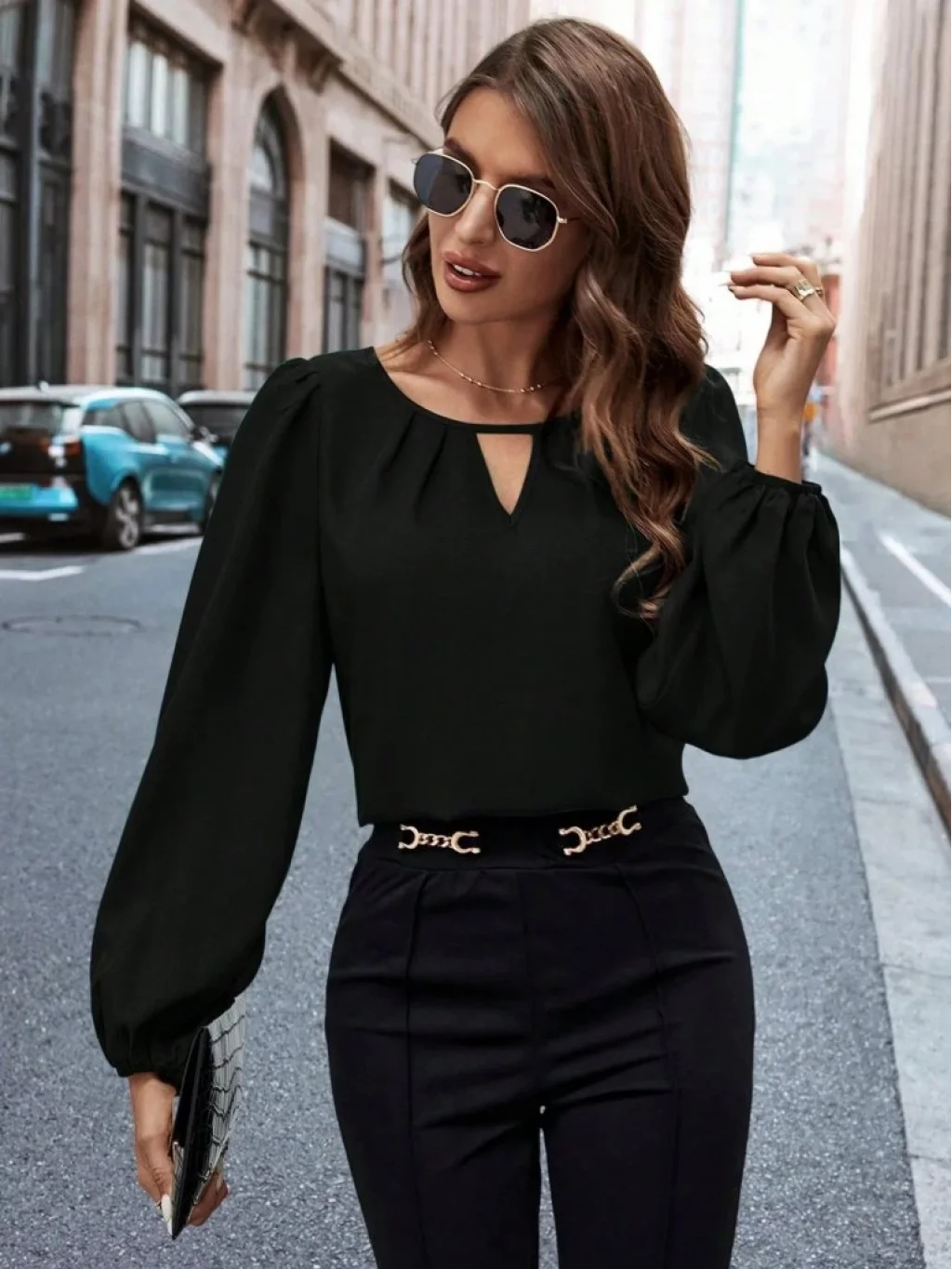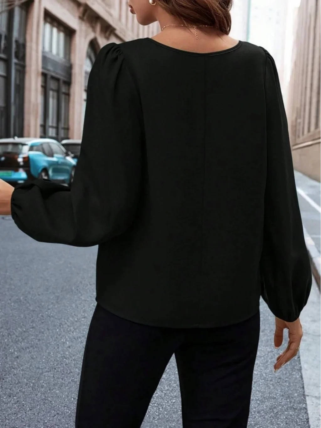 Kadın Uzun Kollu Damla Detaylı Ithal Krep Bluz