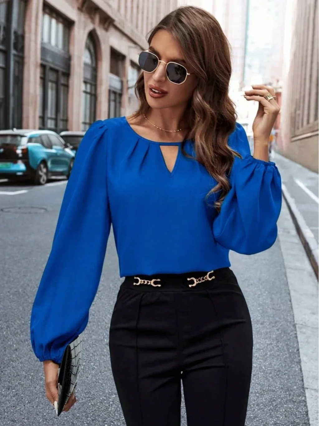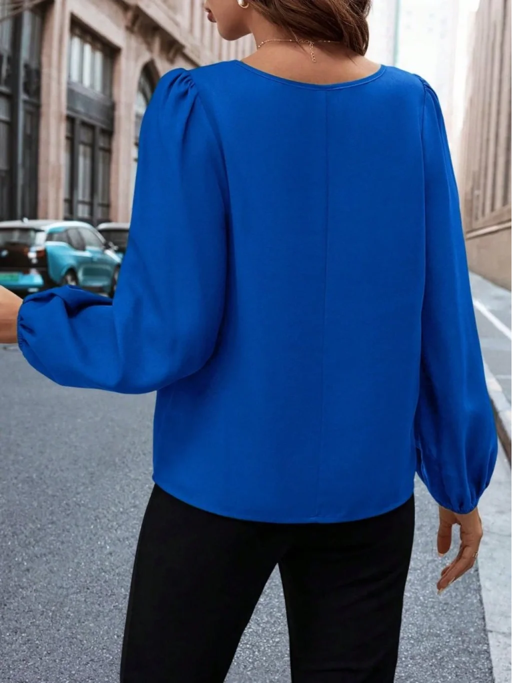 Kadın Uzun Kollu Damla Detaylı Ithal Krep Bluz