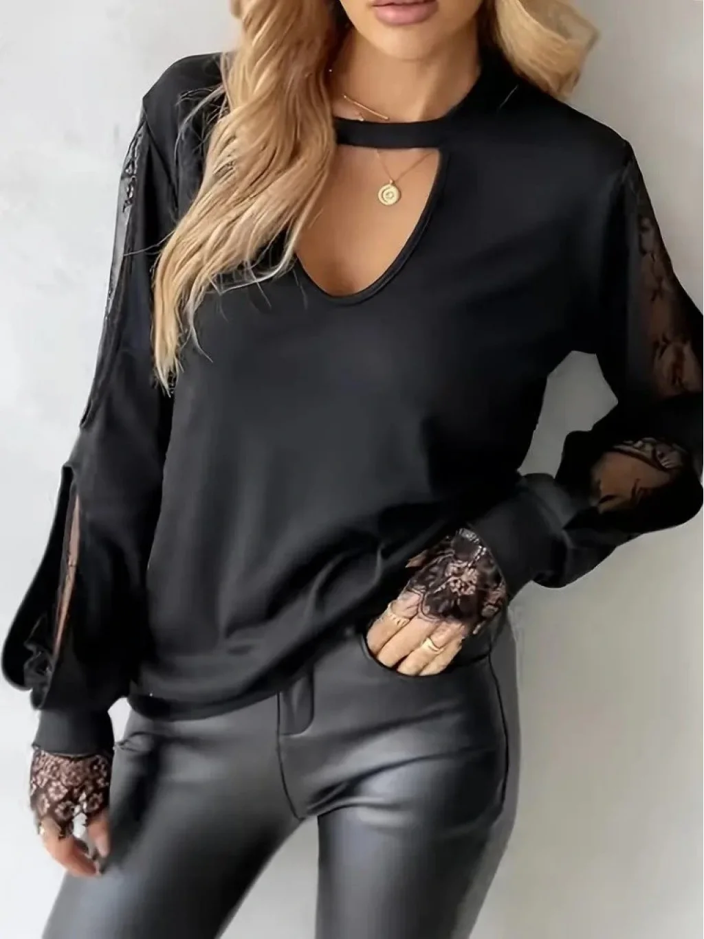 Kadın Uzun Kollu Damla Detaylı Viskon Iki Iplik Bluz