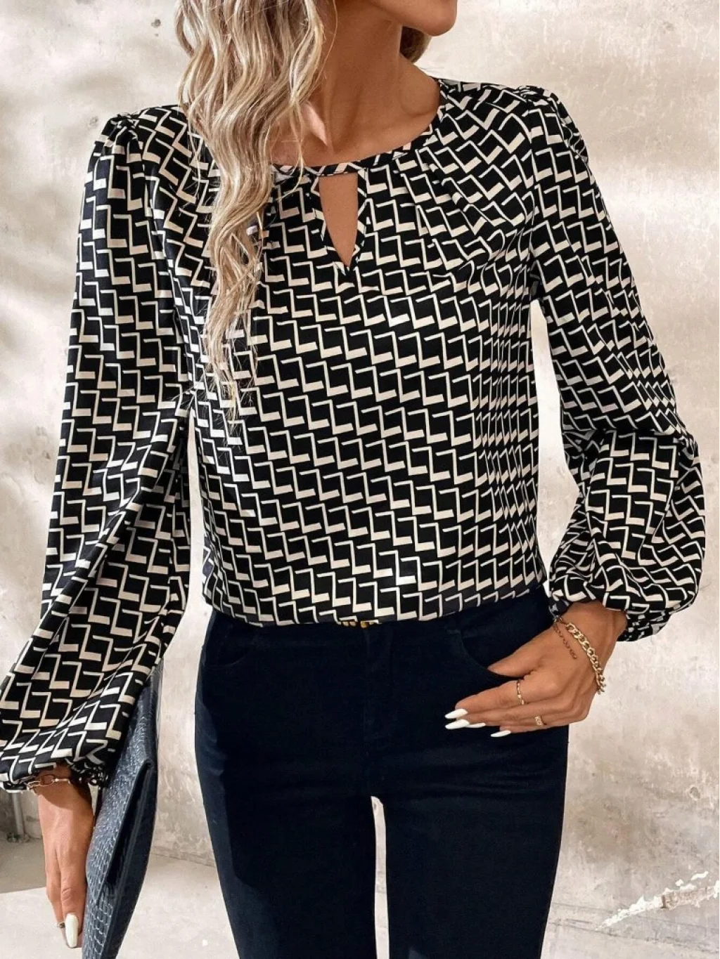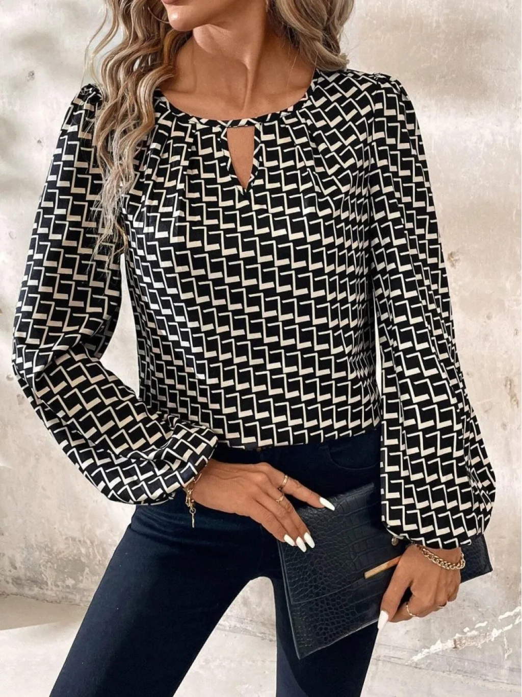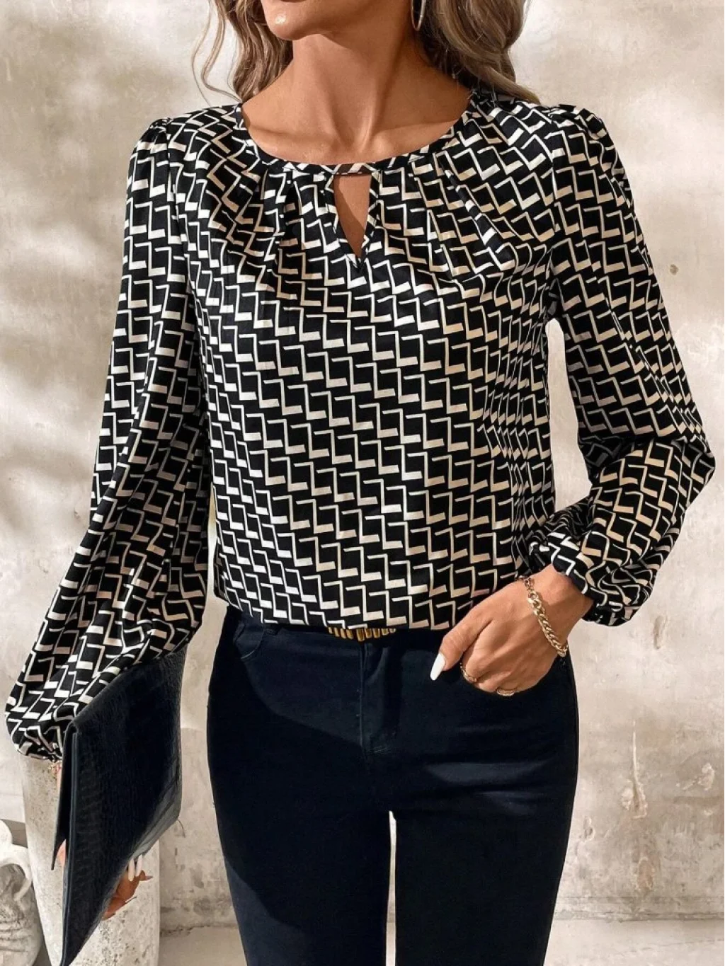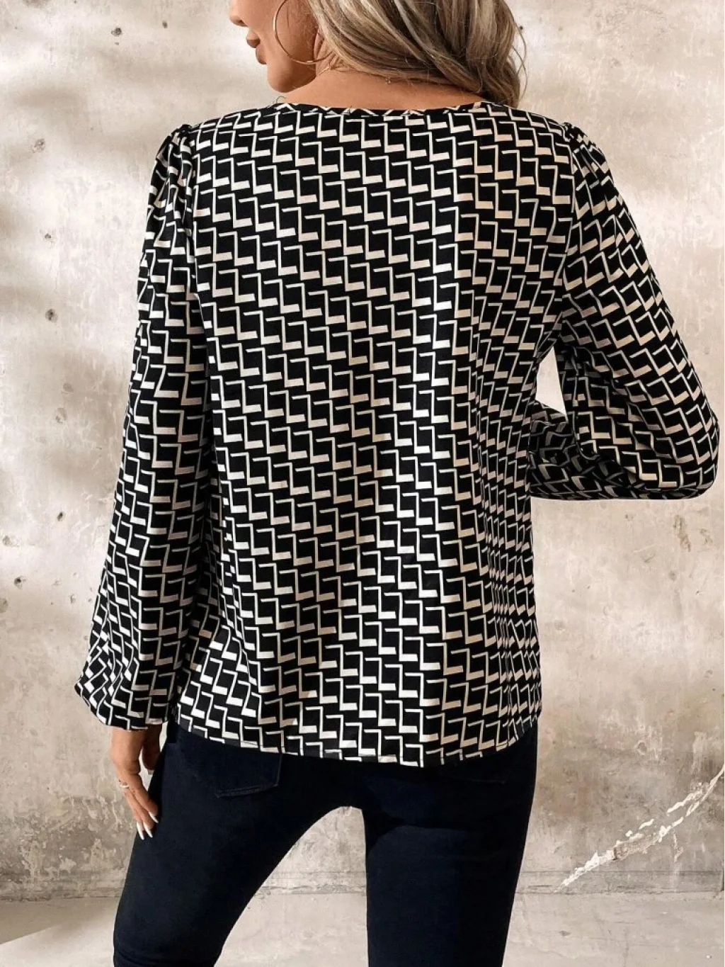 Kadın Uzun Kollu Damla Detaylı Yaka Desenli Süprem Bluz