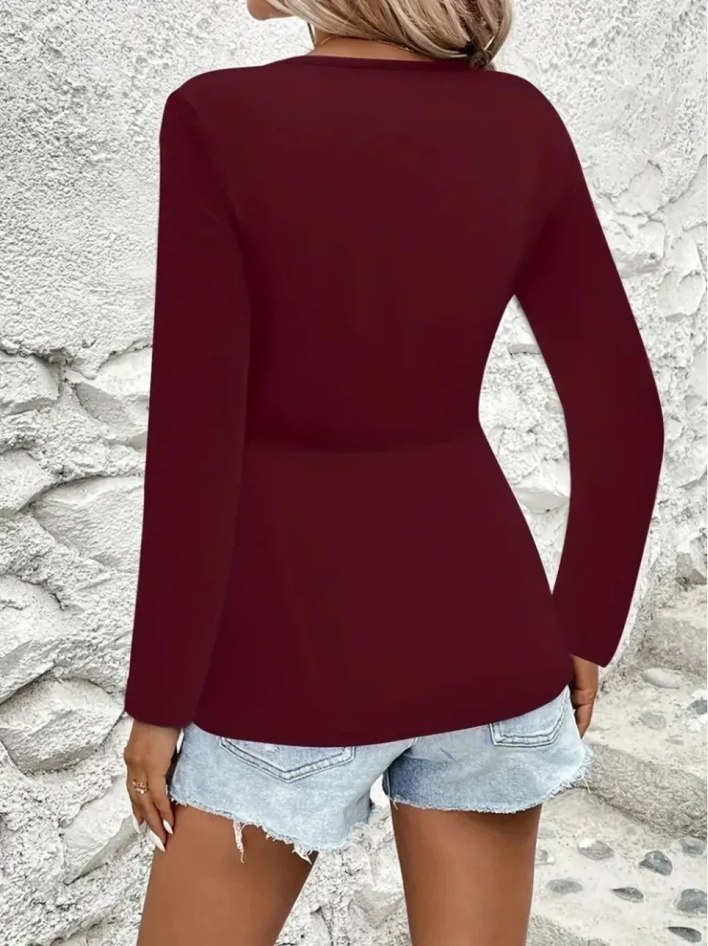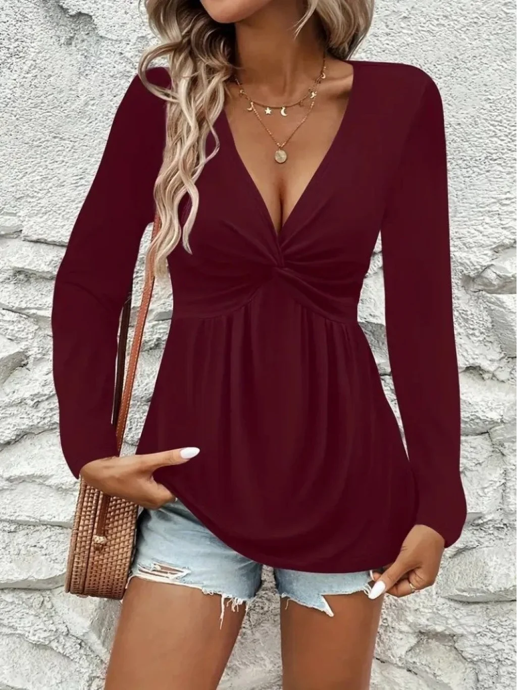 Kadın Uzun Kollu Dekolteli Sarmal Detaylı Viskon Bluz