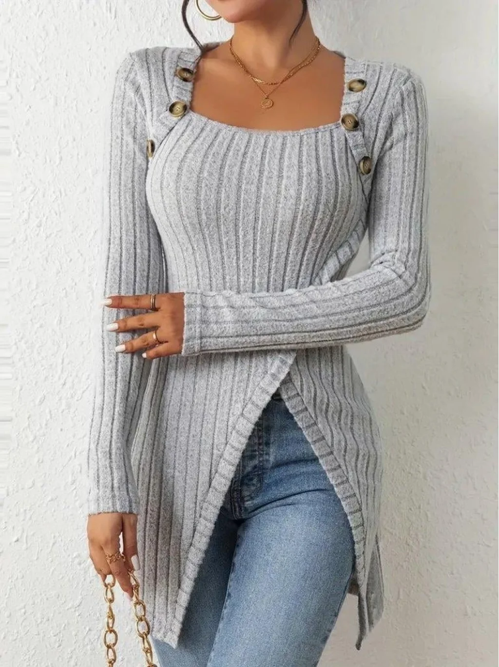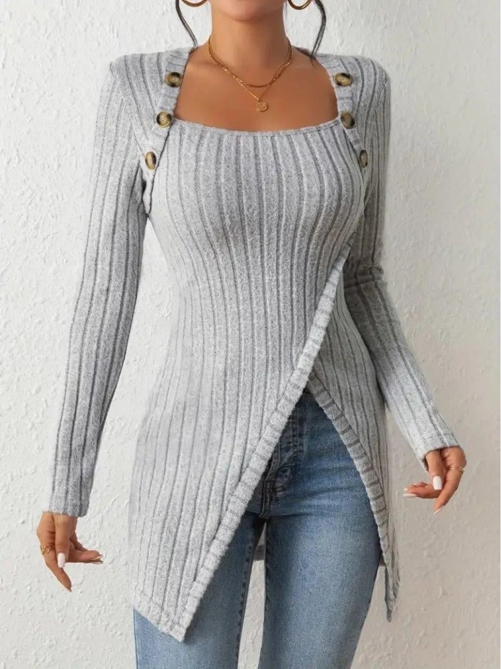 Kadın Uzun Kollu Derin Kare Yaka Düğme Detay şardonlu Kaşkorse Kruvaze Bluz
