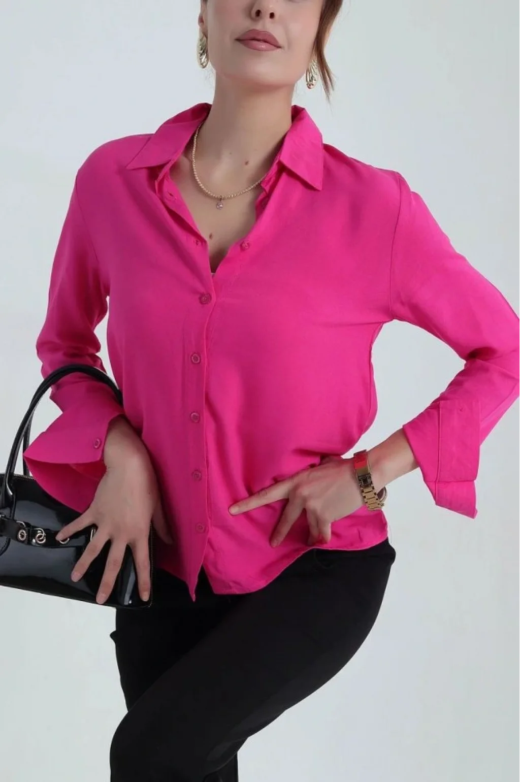 Kadın Uzun Kollu Dokuma Kumaş Klasik Gömlek