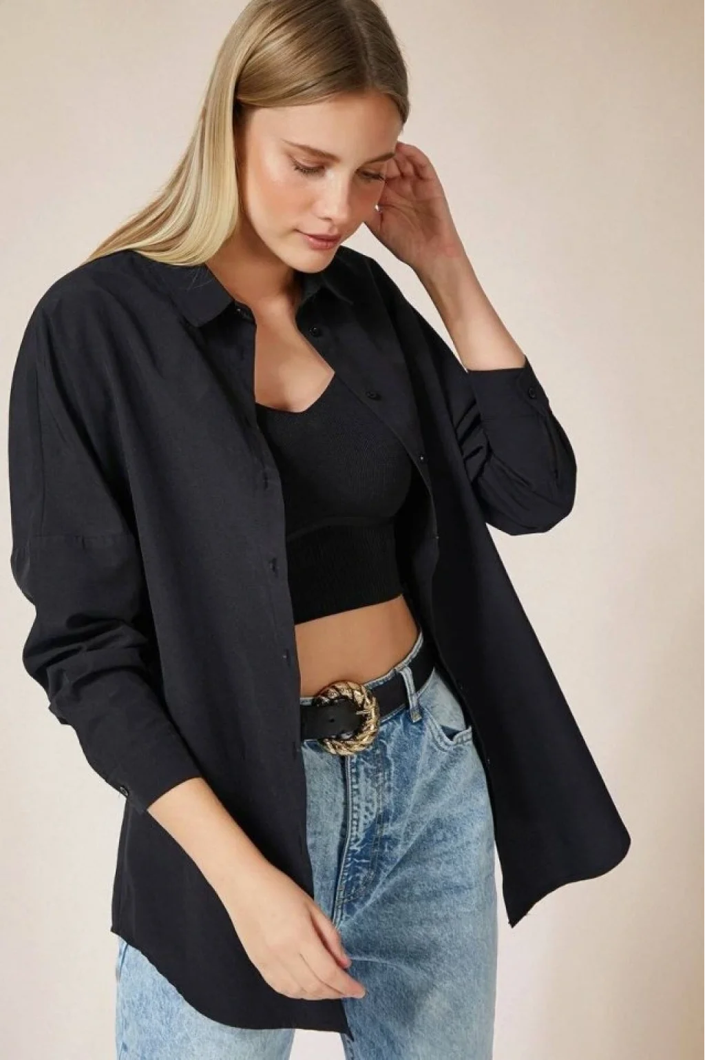 Kadın Uzun Kollu Dokuma Kumaş Klasik Gömlek