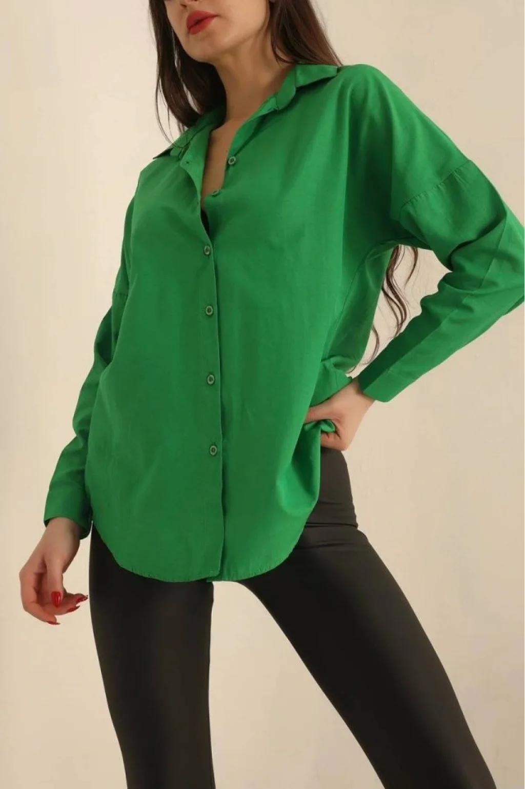 Kadın Uzun Kollu Dokuma Kumaş Klasik Gömlek