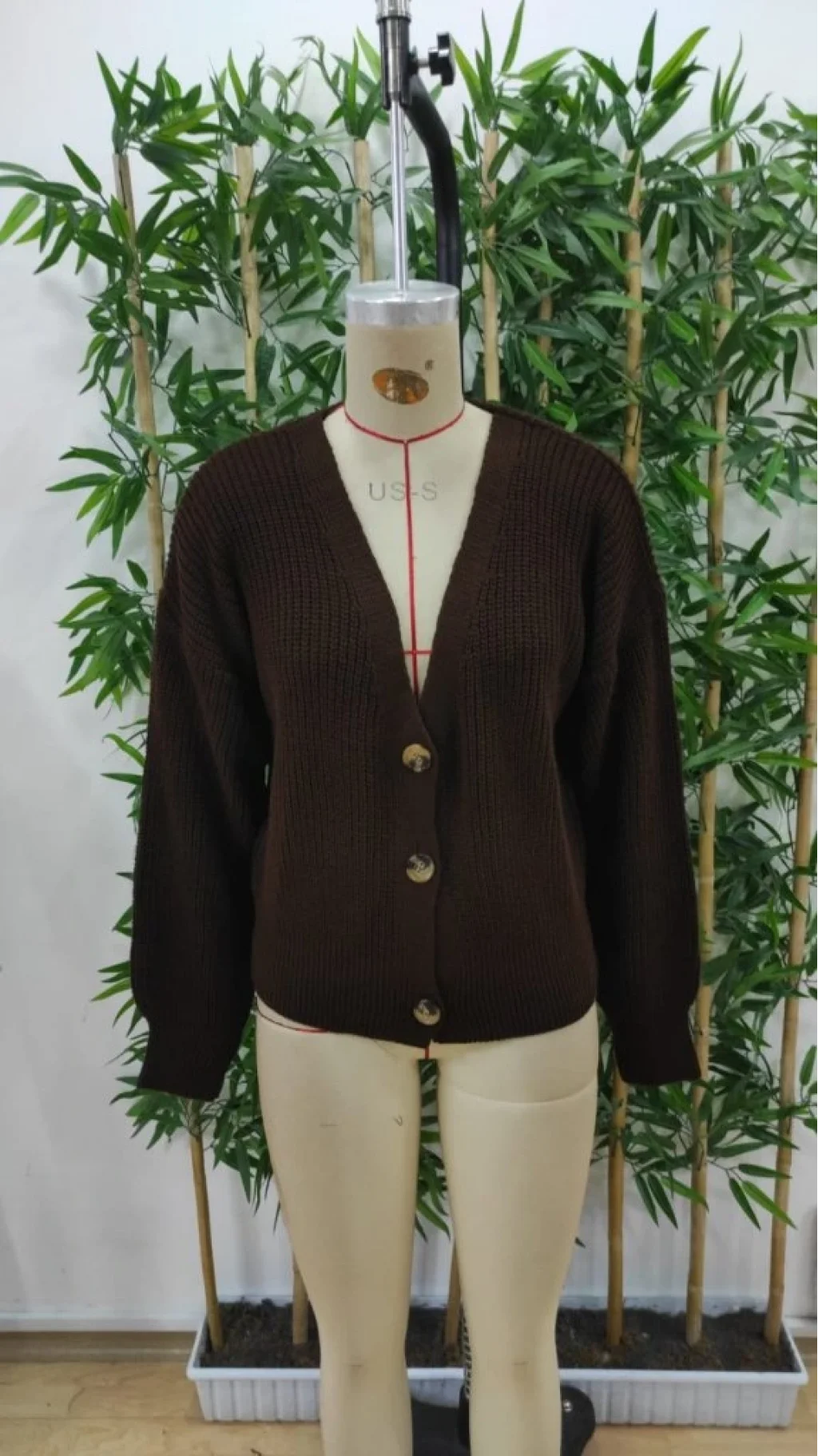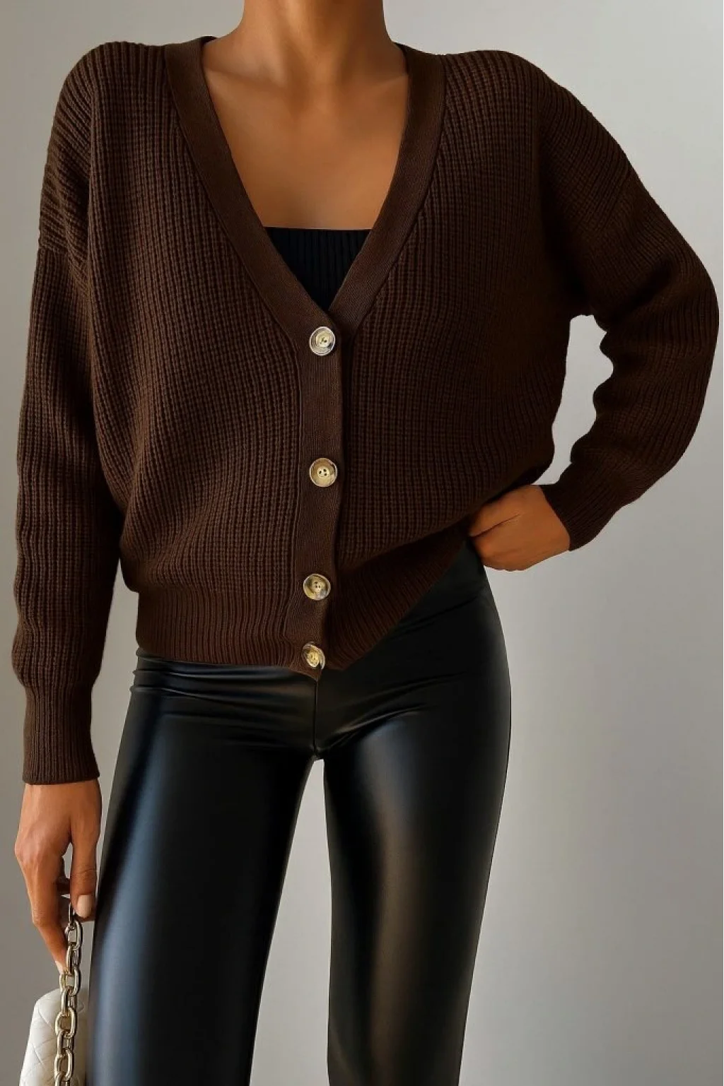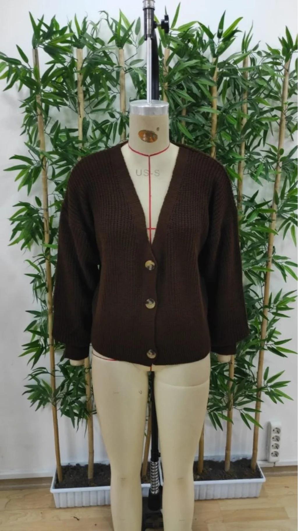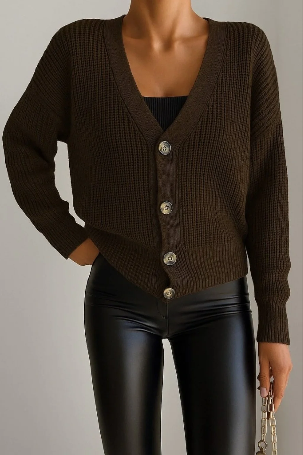 Kadın Uzun Kollu Düğme Detay Triko Hırka
