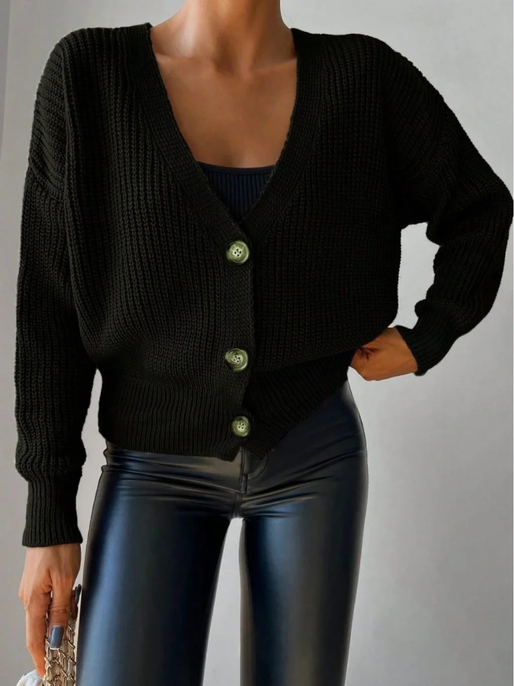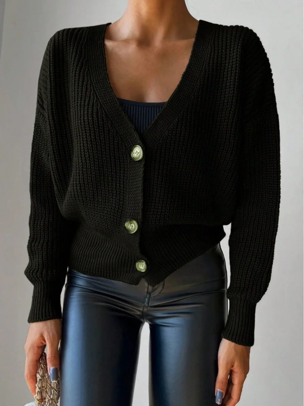 Kadın Uzun Kollu Düğme Detay Triko Hırka
