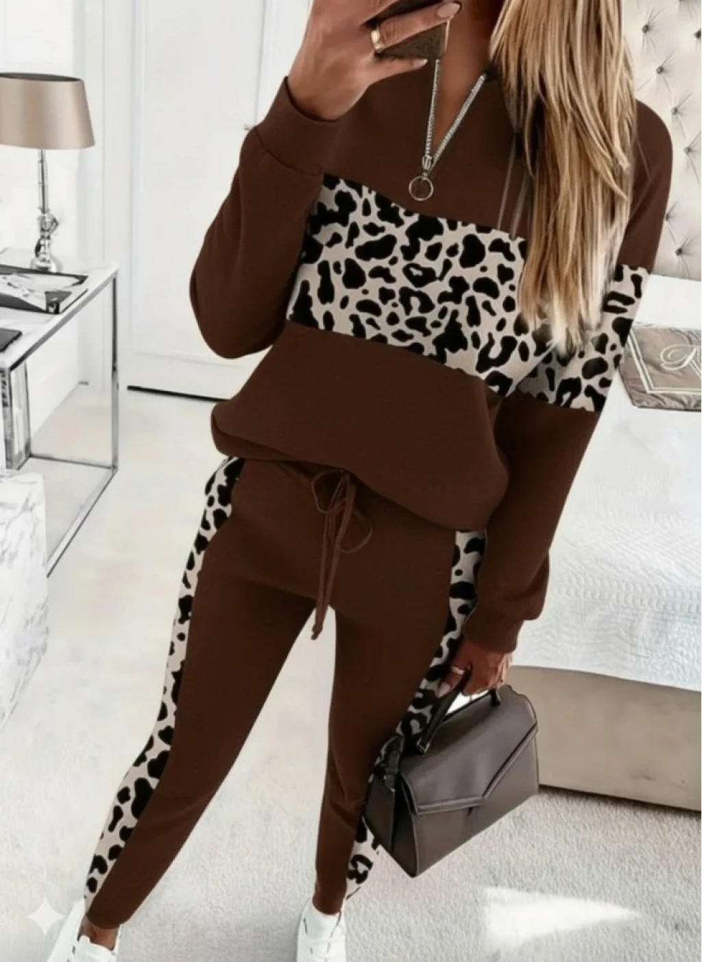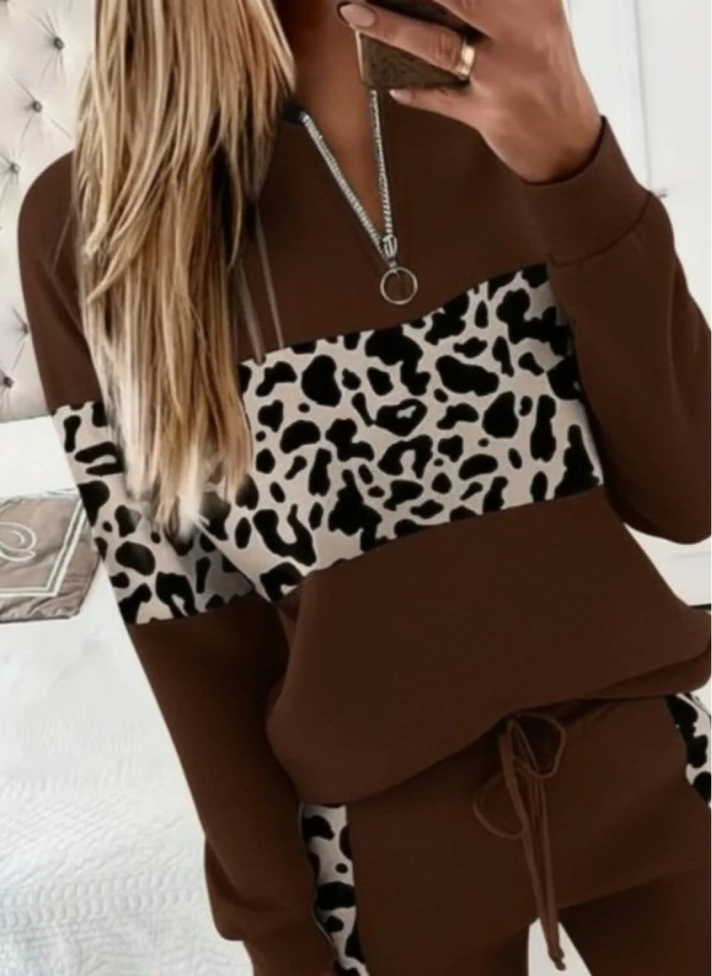 Kadın Uzun Kollu Fermuarlı Karışık Desenli Viskon Iki Iplik Bluz Ve Pantolon Ikili Takım