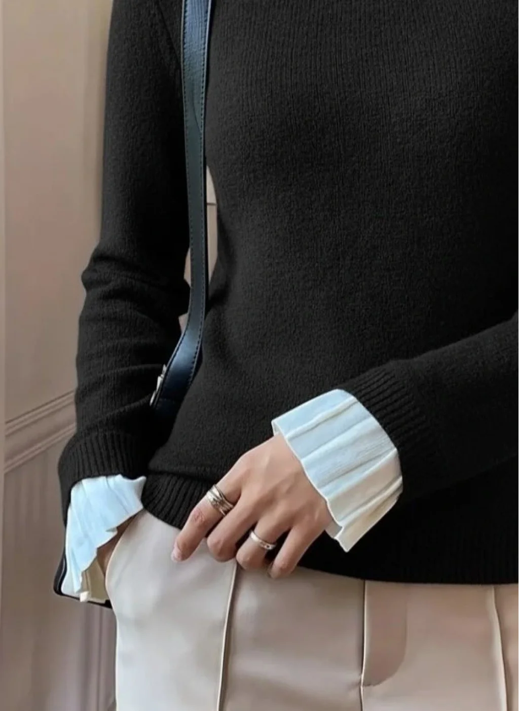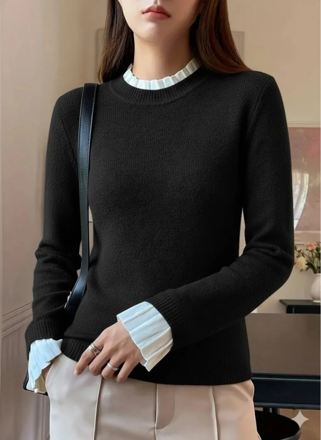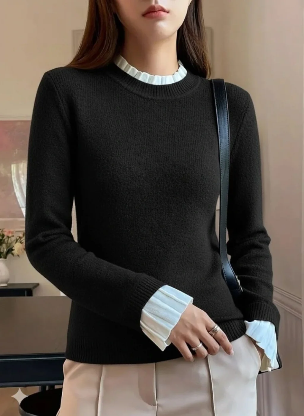 Kadın Uzun Kollu Fırfırlı Yakalı Triko Bluz
