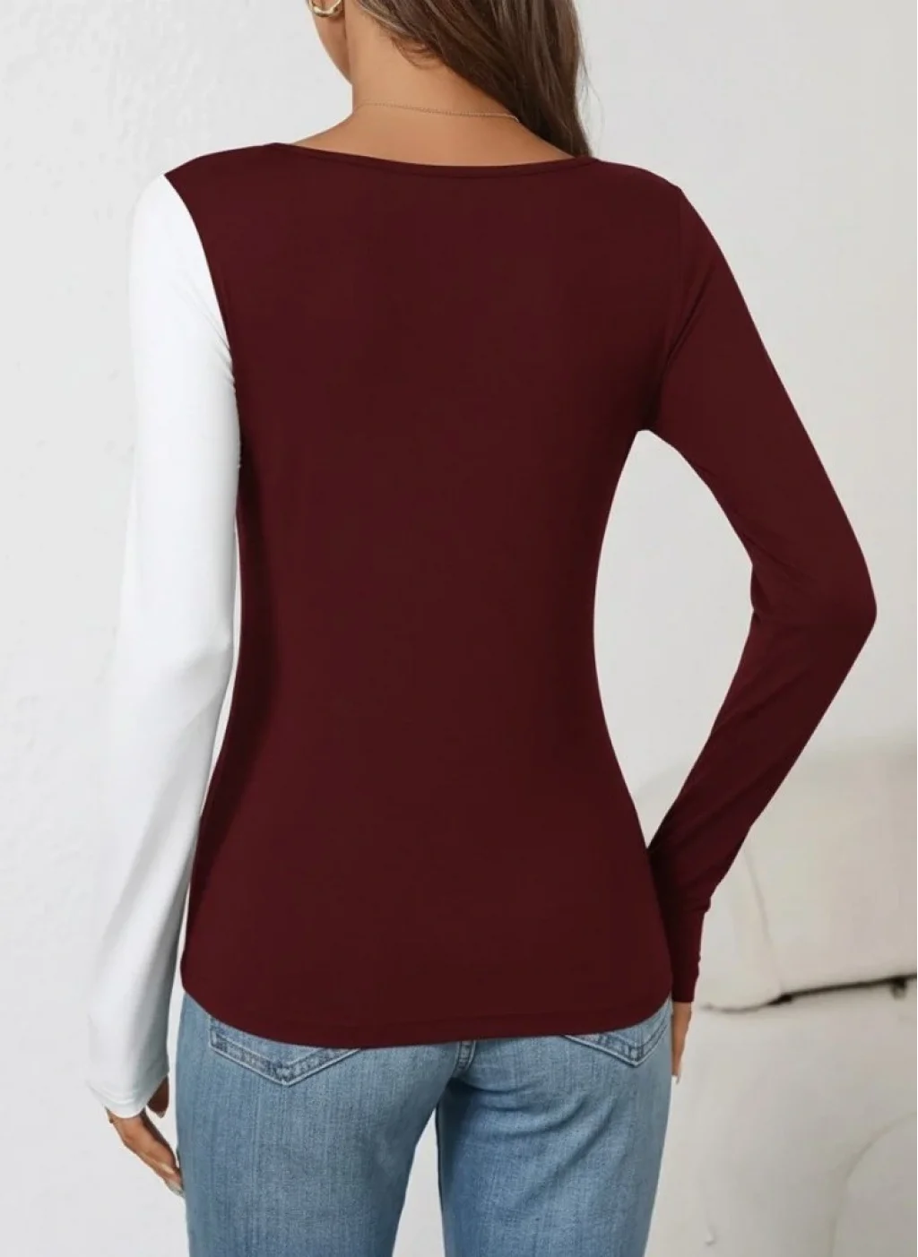 Kadın Uzun Kollu Geometrik Yaka Detaylı çift Renkli Viskon Bluz