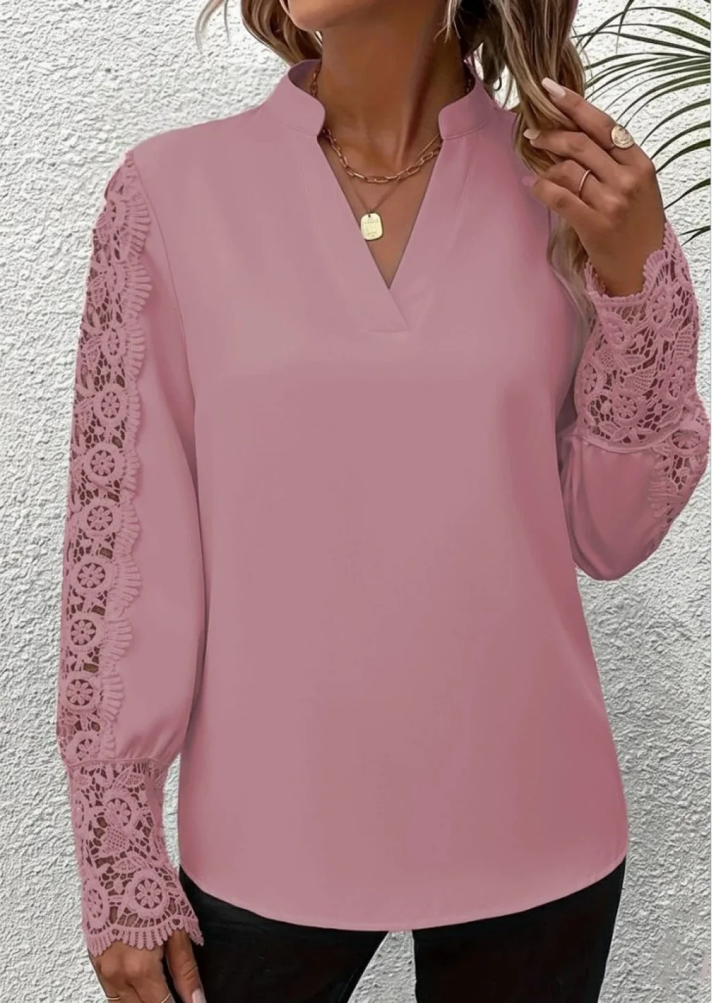 Kadın Uzun Kollu Hakim Yaka Kolları Dantel Detaylı Ithal Krep Bluz