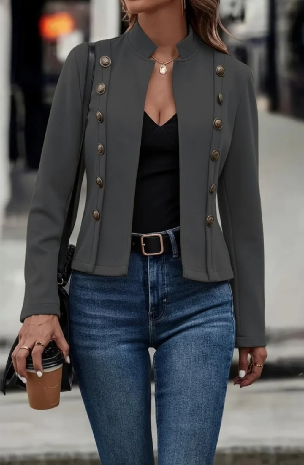 Kadın Uzun Kollu Hakim Yaka Yanlardan Düğmeli Kısa Süet Ceket