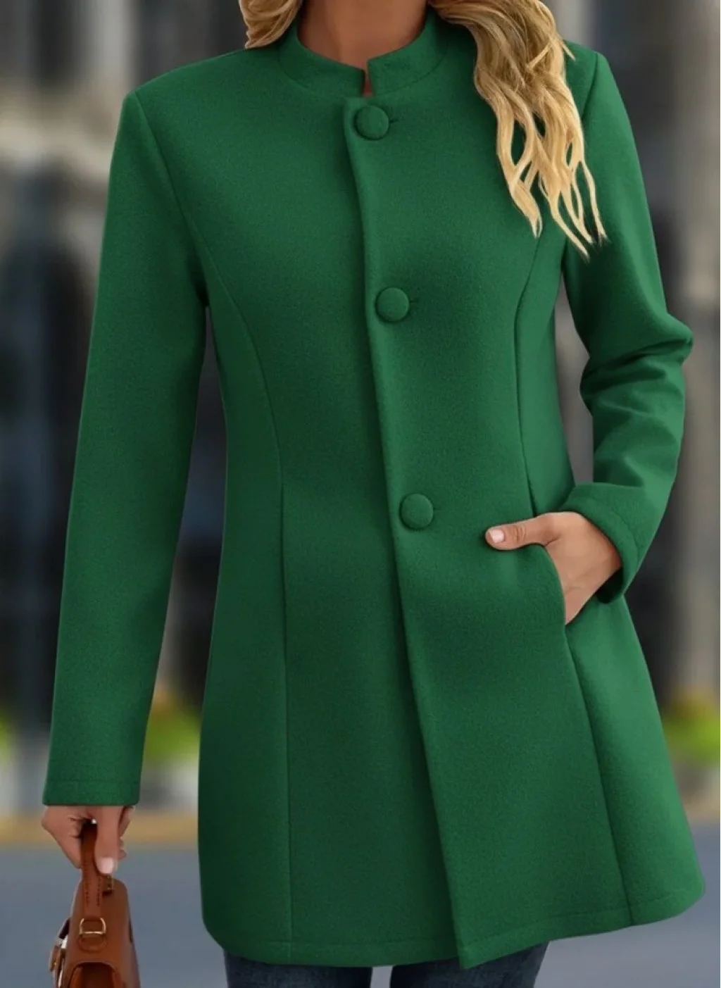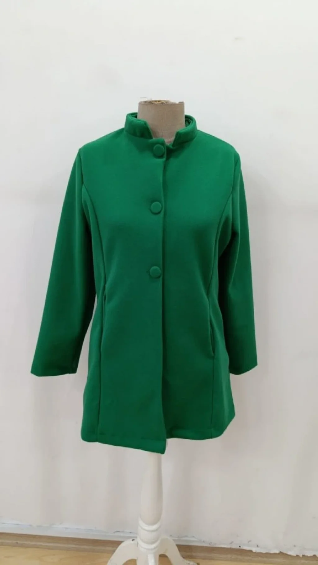 Kadın Uzun Kollu Hakim Yakalı önden Düğmeli Cep Detaylı Kısa Taba Kaşe Kaban