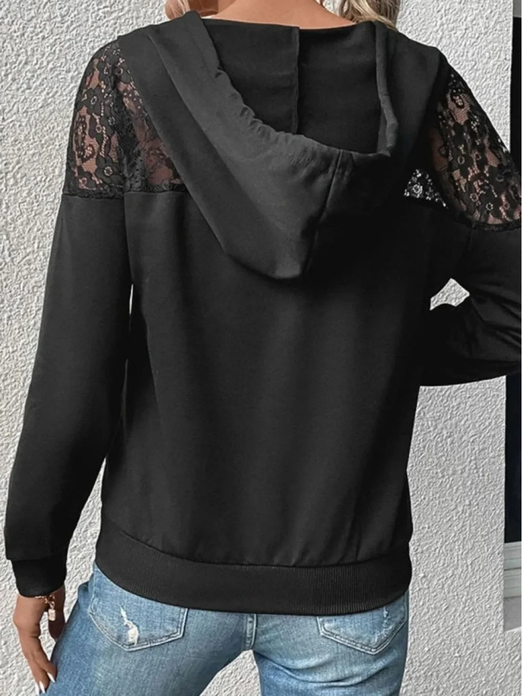 Kadın Uzun Kollu Kapşonlu Bağcıklı Dantelli Viskon Iki Iplik Bluz