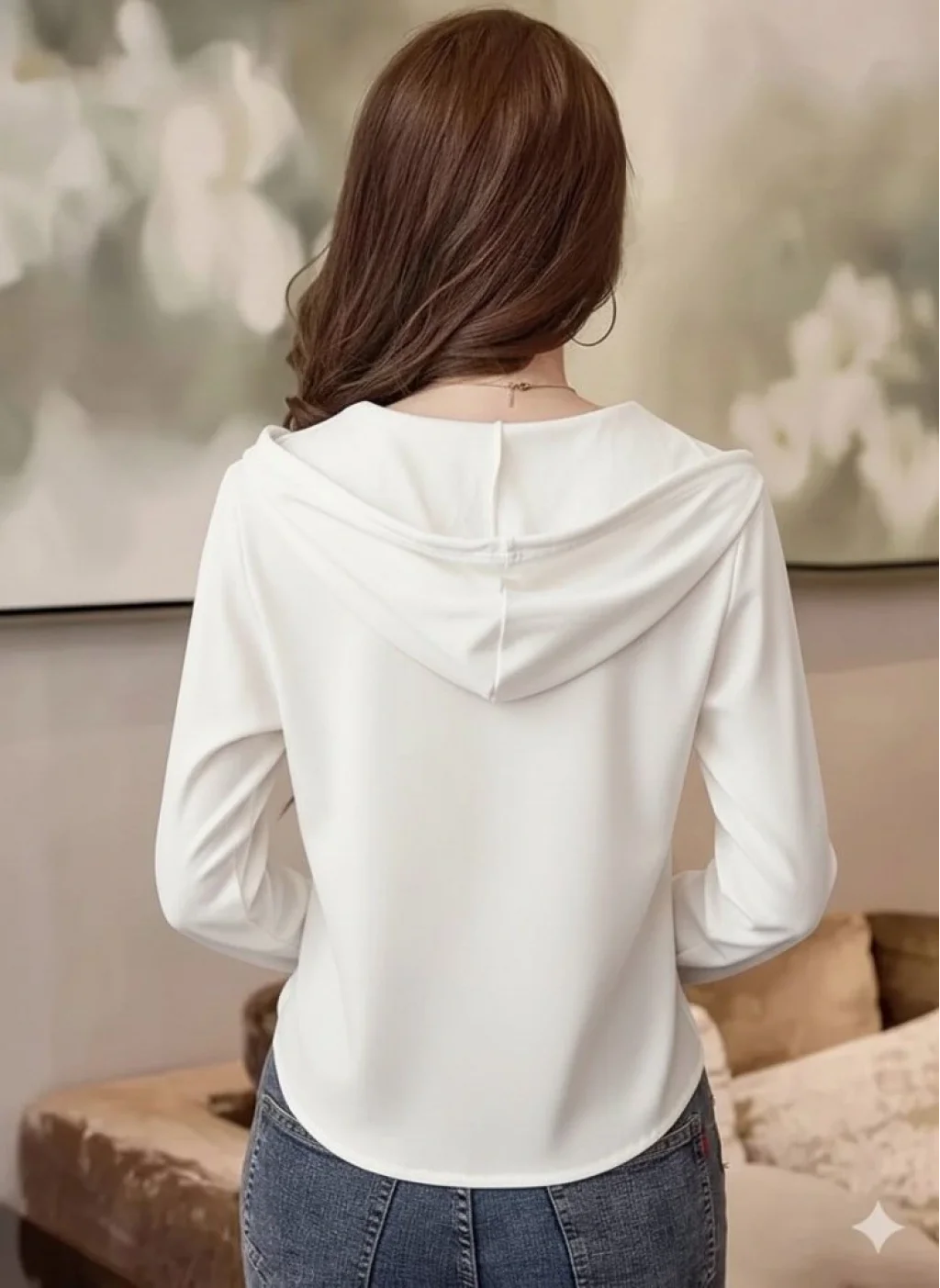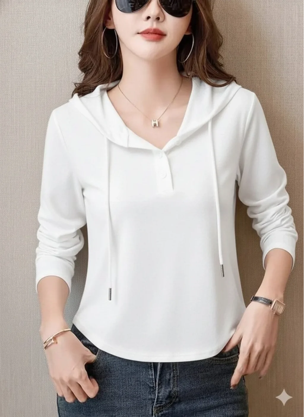 Kadın Uzun Kollu Kapşonlu Bağcıklı Düğmeli Viskon Iki Iplik Bluz