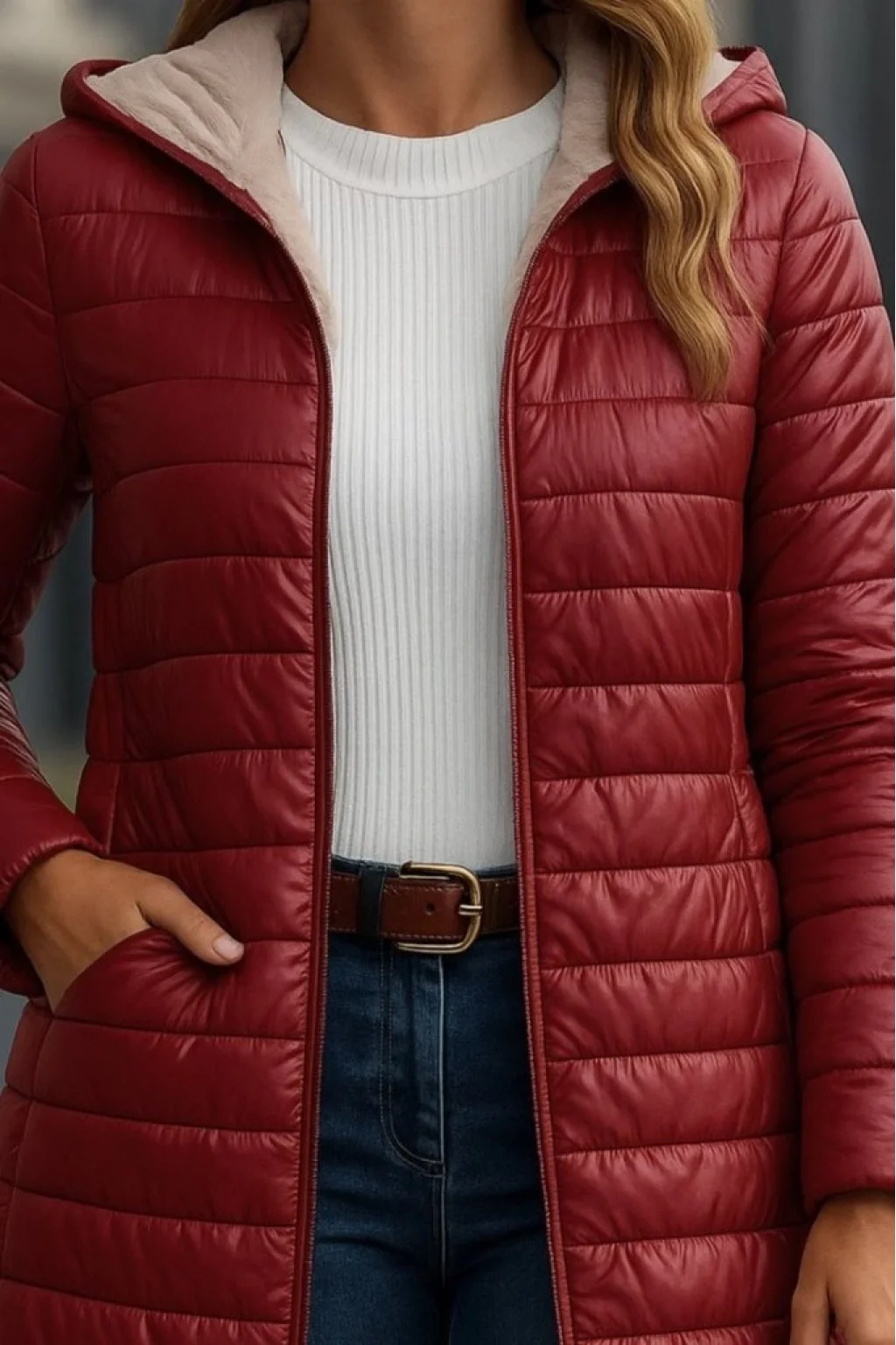 Kadın Uzun Kollu Kapşonlu Cep Detaylı Fermuarlı Orta Boy Mont