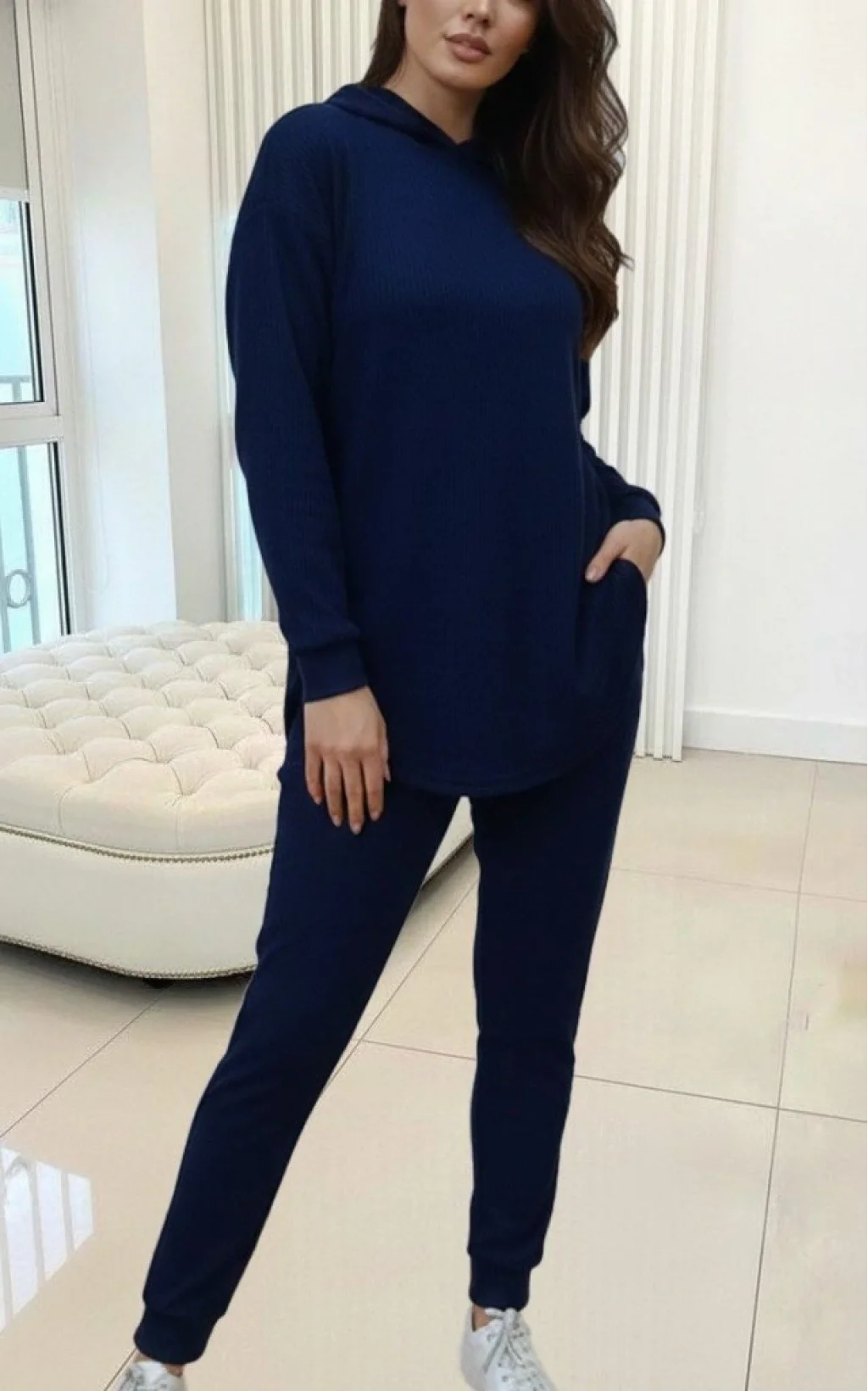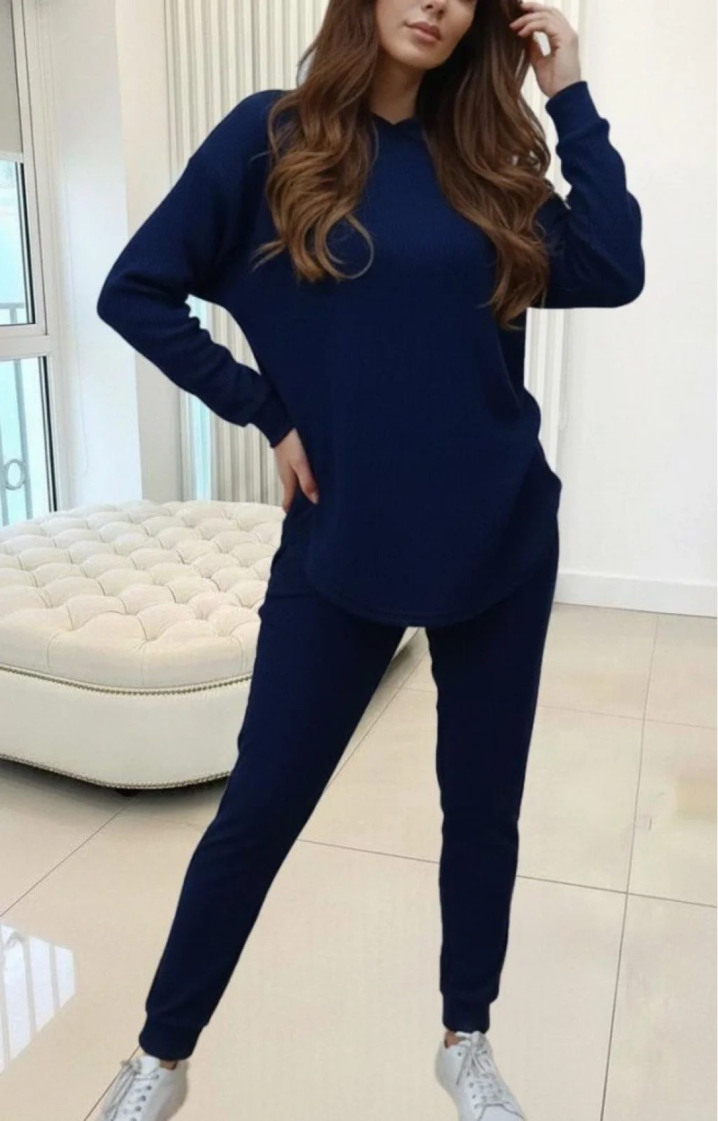 Kadın Uzun Kollu Kapşonlu Meloni Bluz Ve Pantolon Ikili Takım