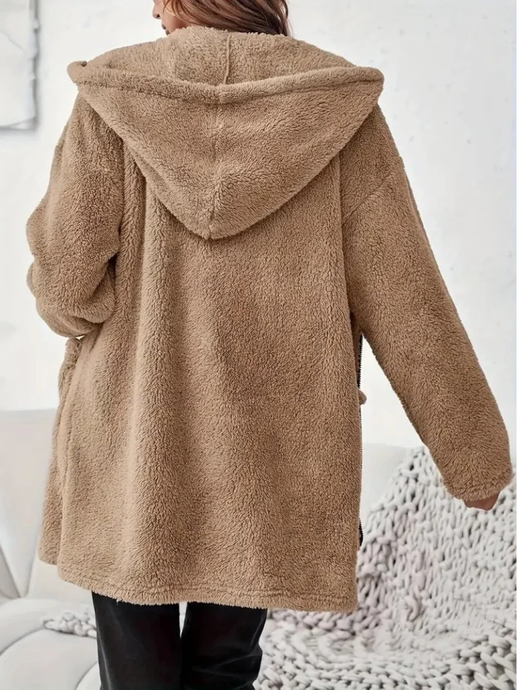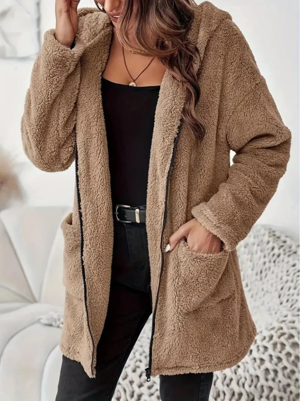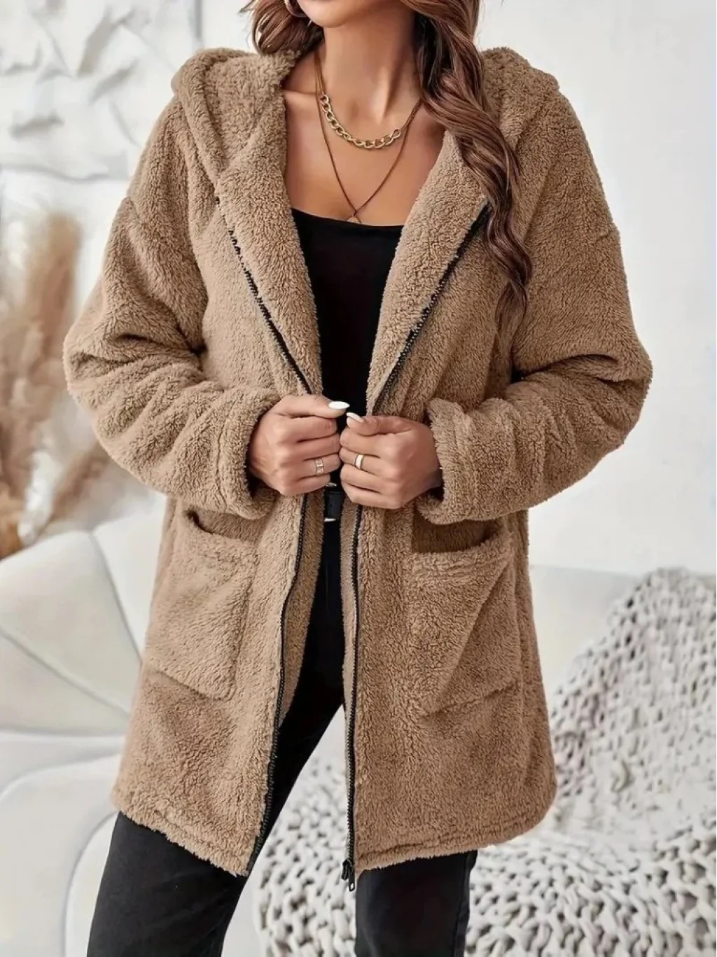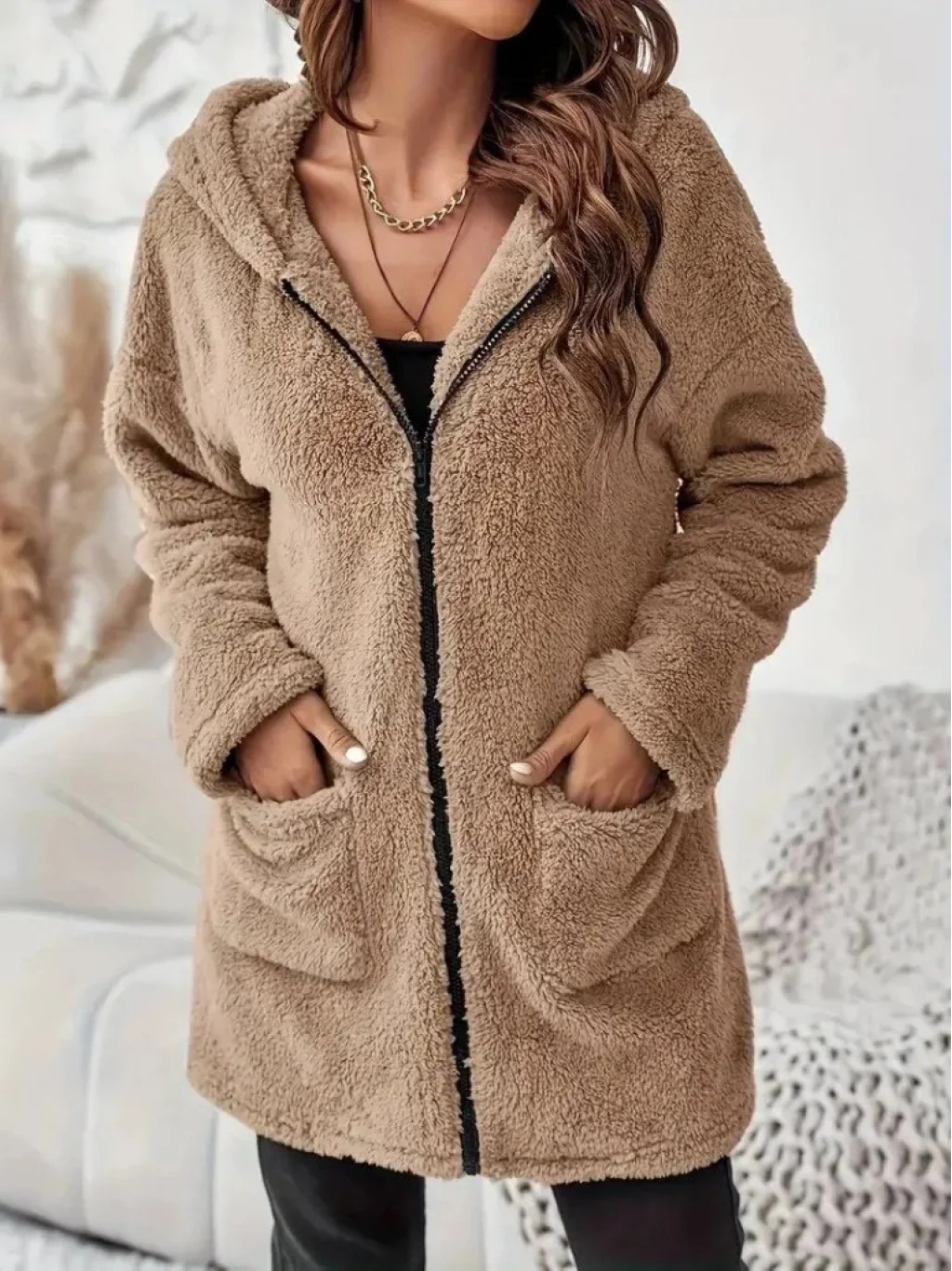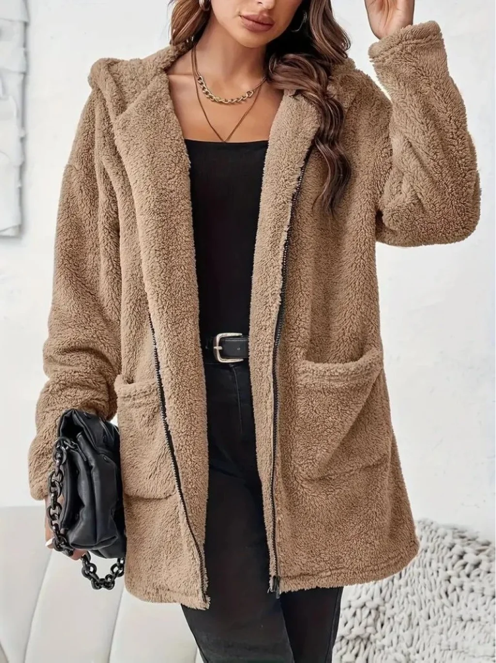 Kadın Uzun Kollu Kapşonlu önden Fermuarlı Cepli Welsoft Ceket