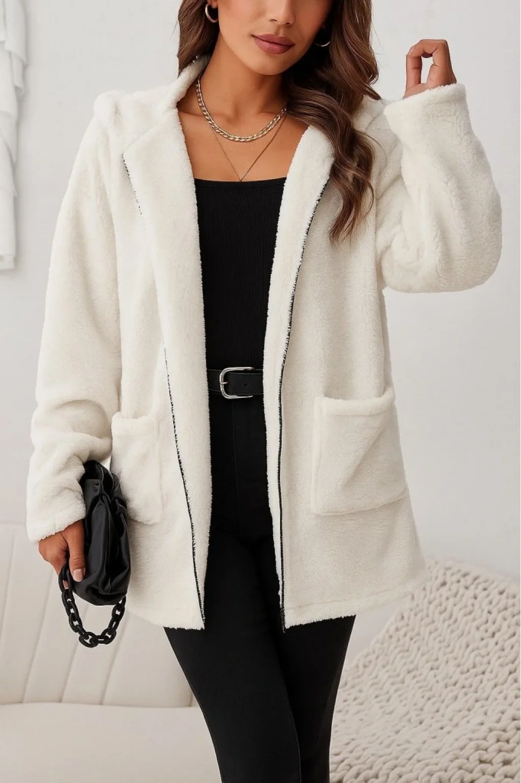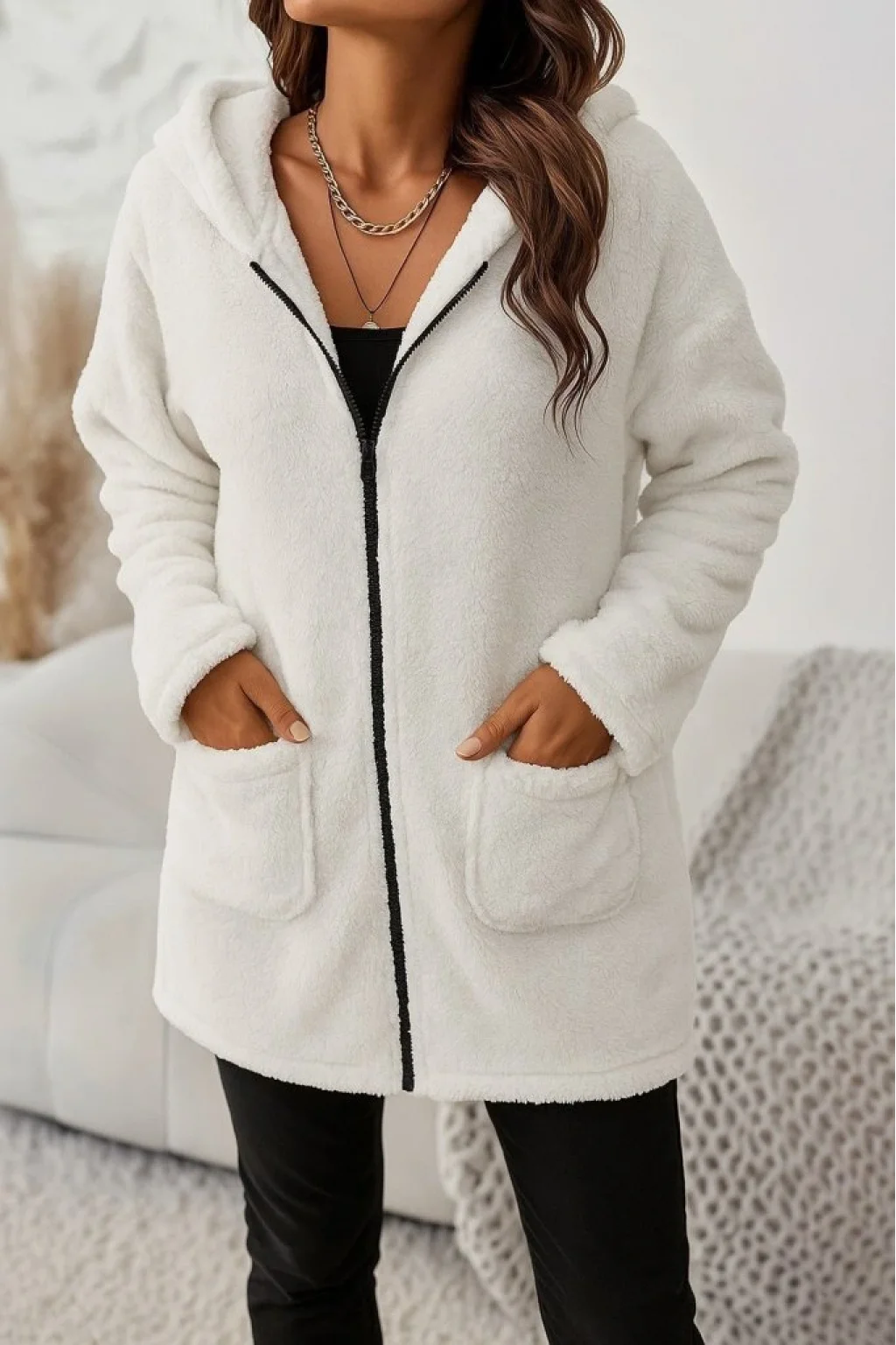 Kadın Uzun Kollu Kapşonlu önden Fermuarlı Cepli Welsoft Ceket