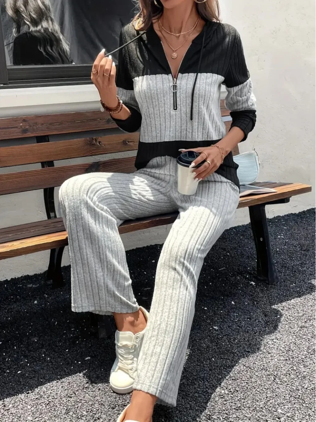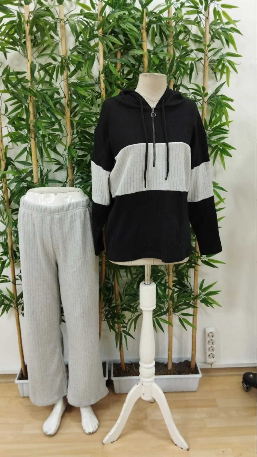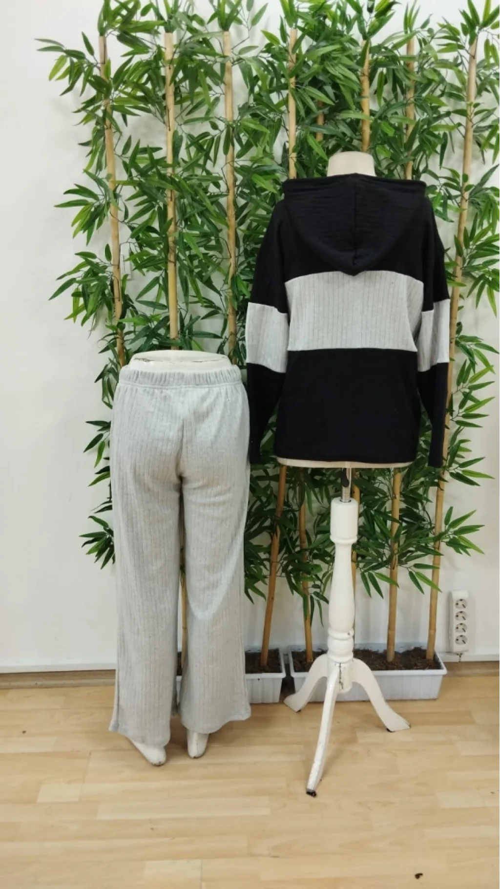 Kadın Uzun Kollu Kapşonlu önden Fermuarlı şardonlu Kaşkorse Bluz Ve Pantolon