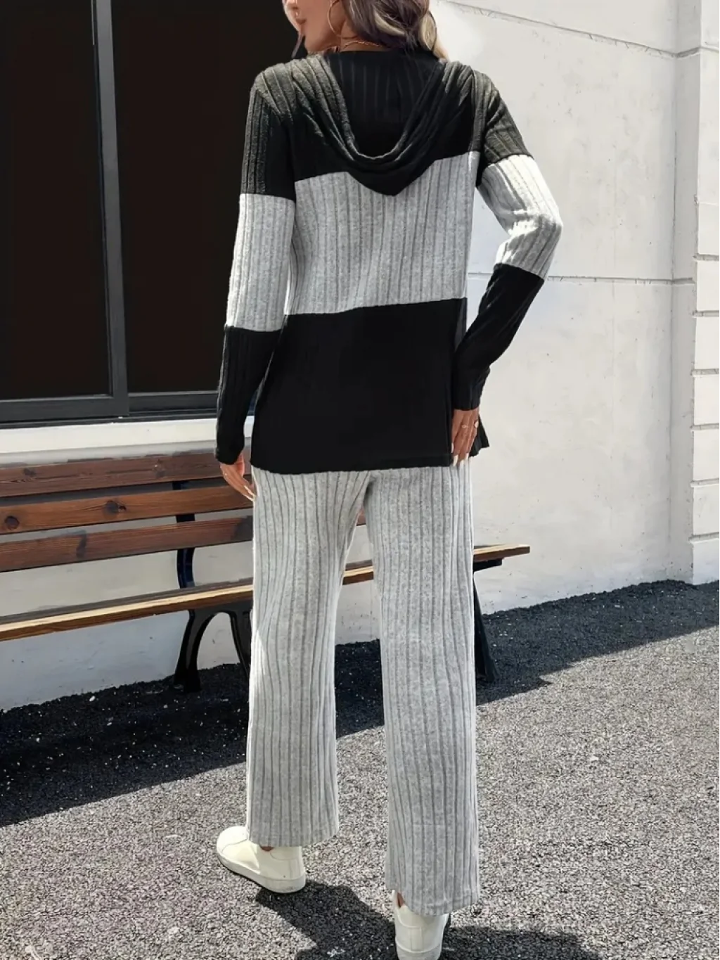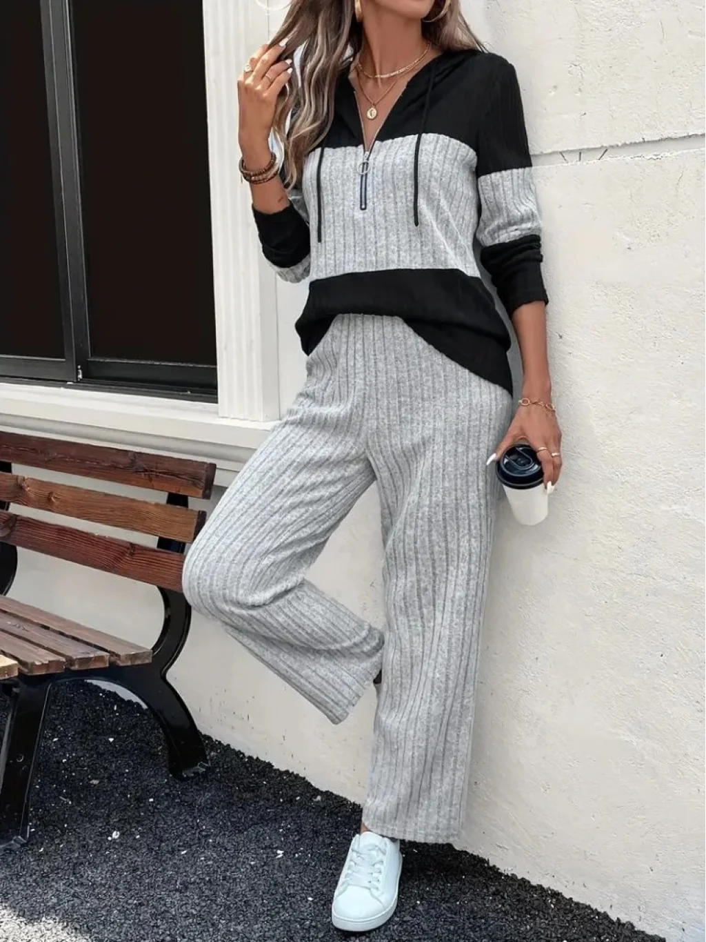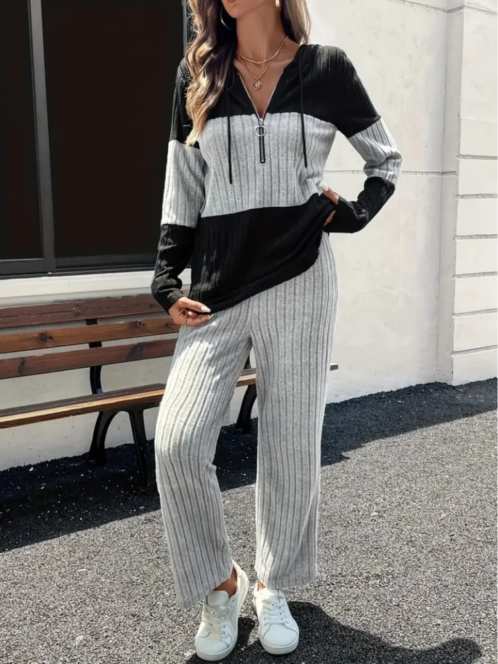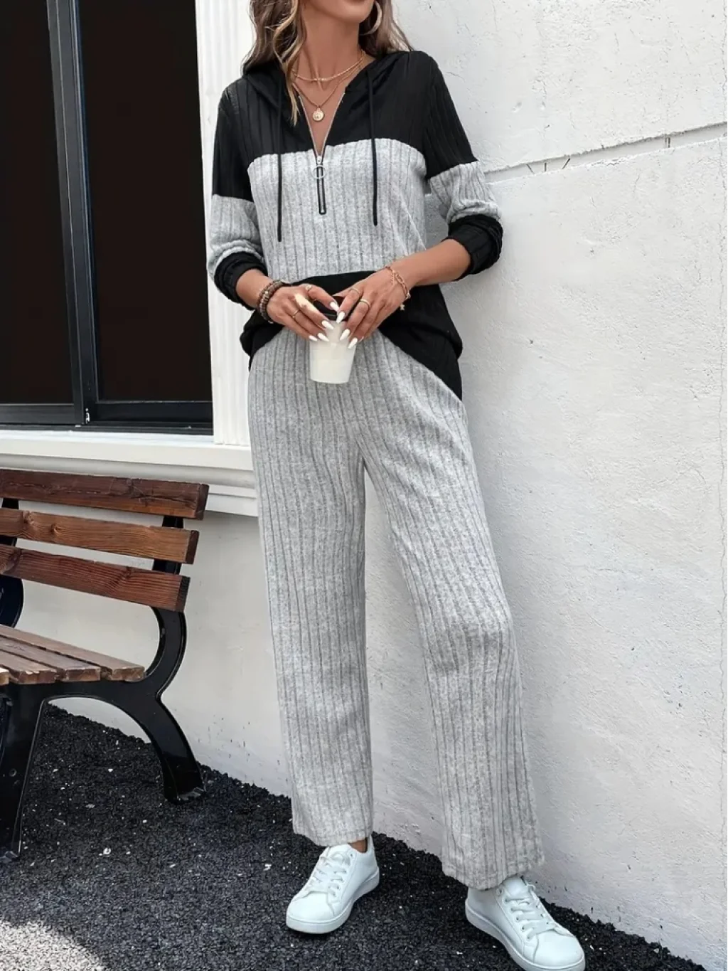 Kadın Uzun Kollu Kapşonlu önden Fermuarlı şardonlu Kaşkorse Bluz Ve Pantolon