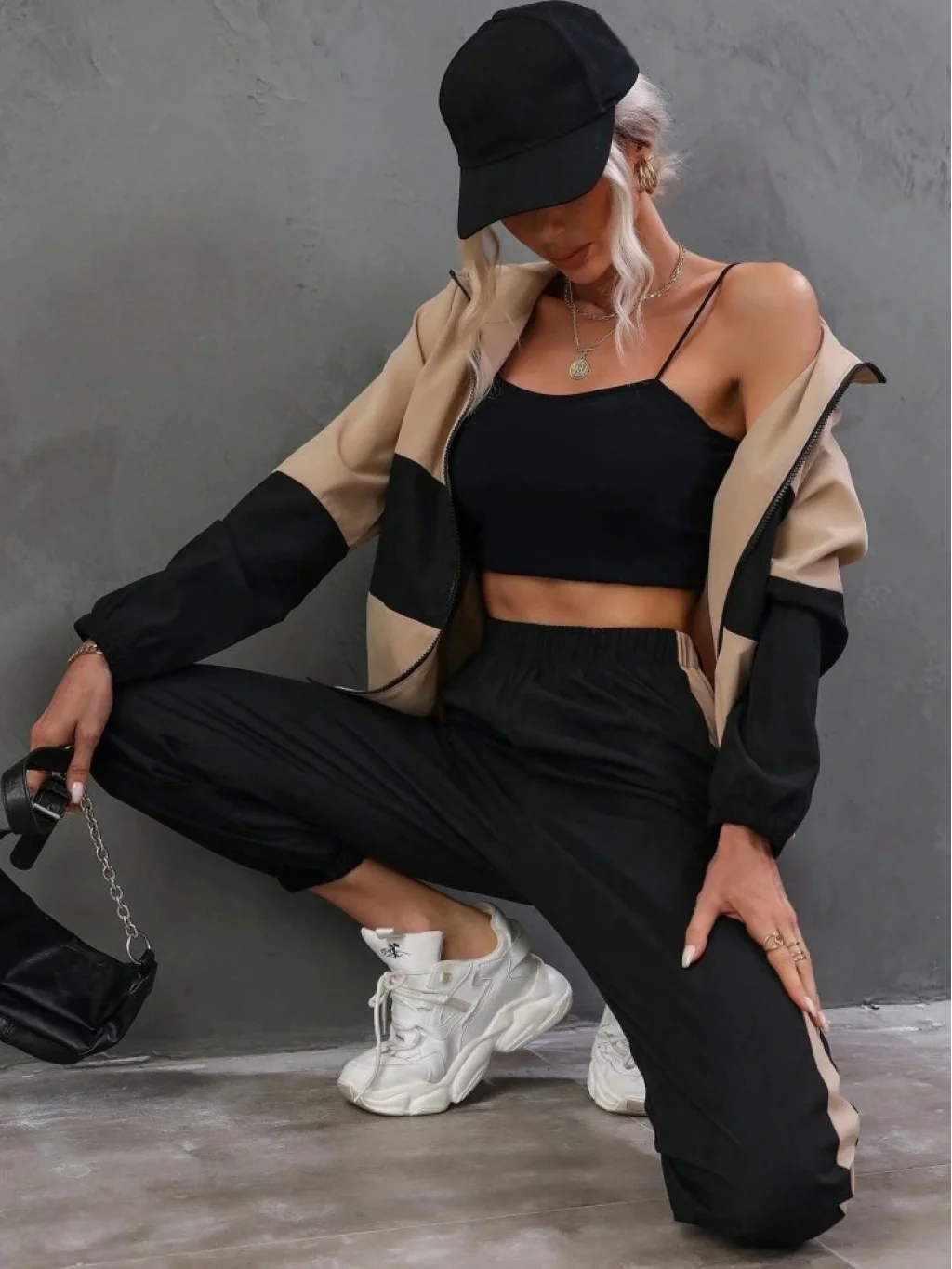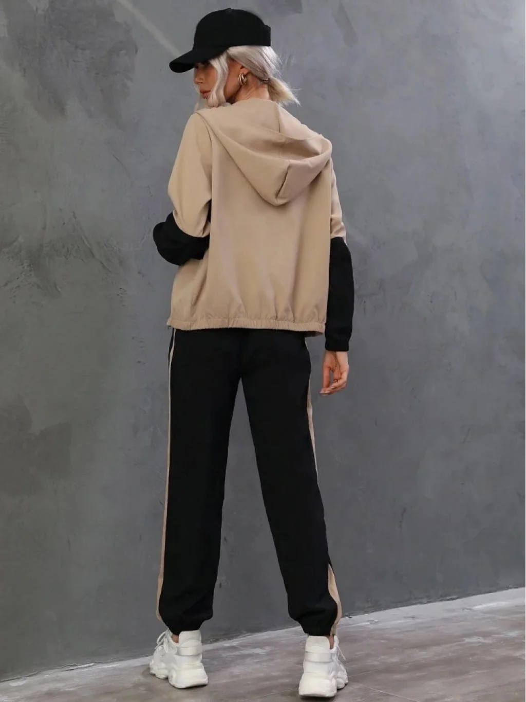 Kadın Uzun Kollu Kapşonlu önden Fermuarlı Viskon Iki Iplik Bluz Ve Pantolon Ikili Takım