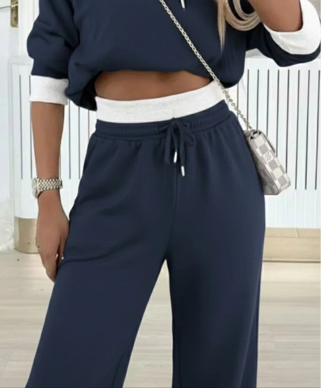 Kadın Uzun Kollu Kapşonlu Viskon Iki Iplik Füme Bluz Ve Pantolon Ikili Takım