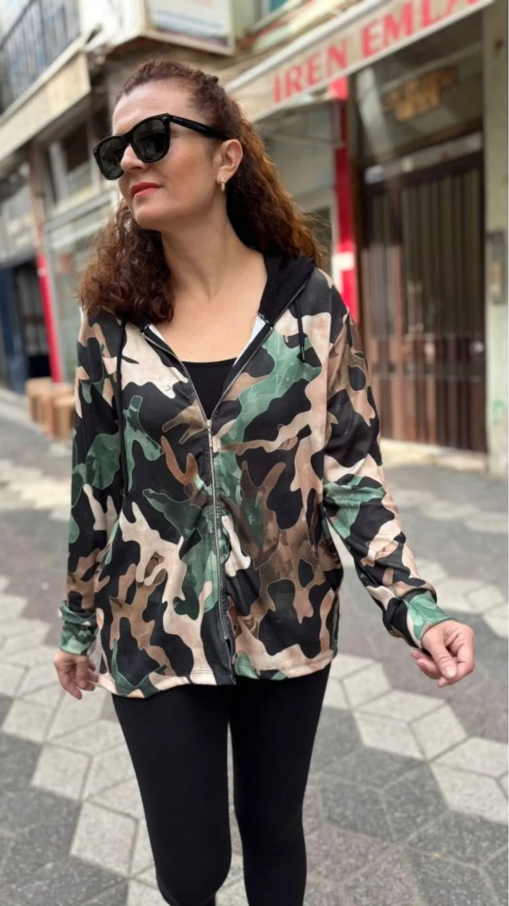 Kadın Uzun Kollu Kapüşon Detay Dijital Baskılı Ceket