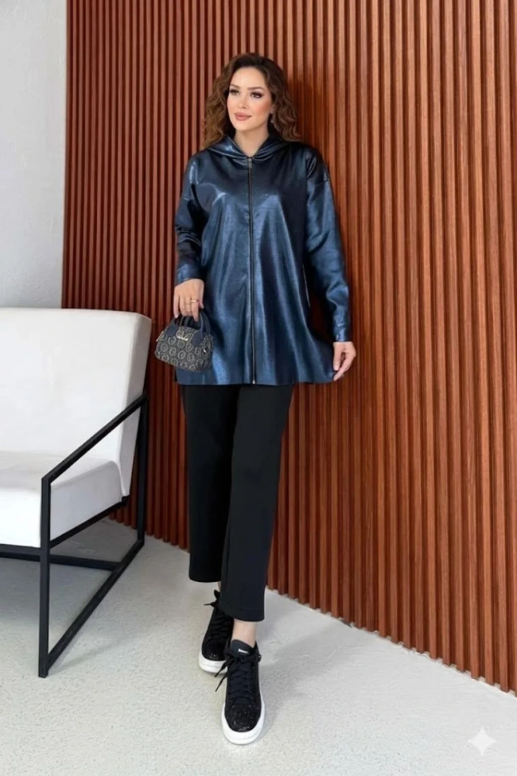 Kadın Uzun Kollu Kapüşon Detay Fermuarlı Tunik Hırka