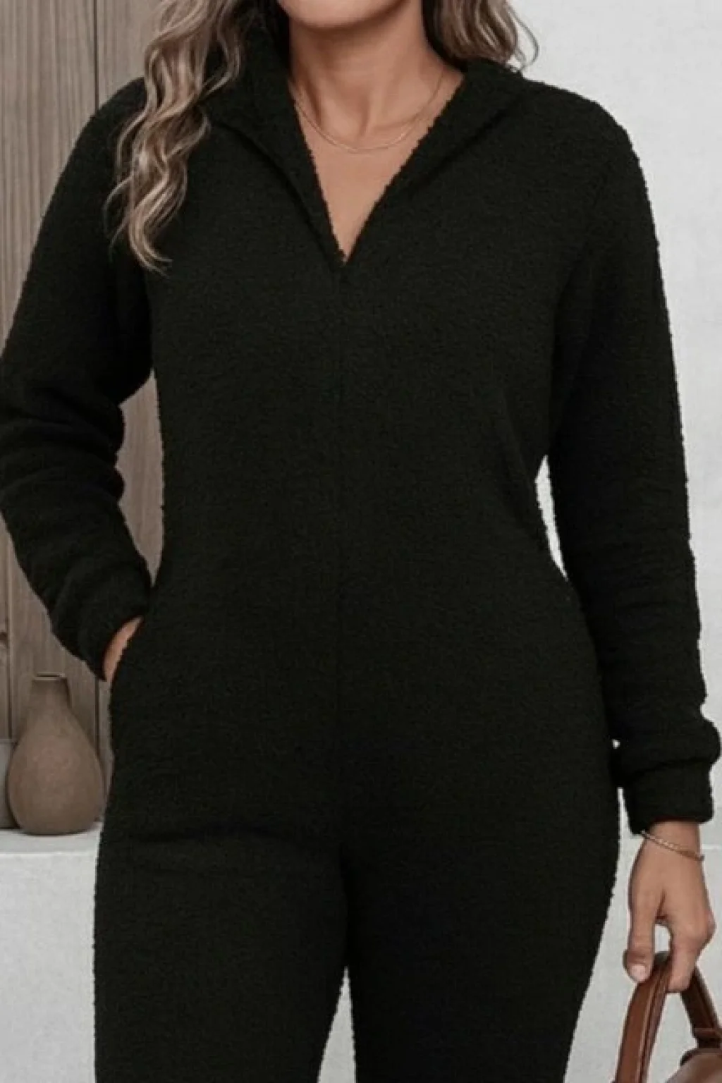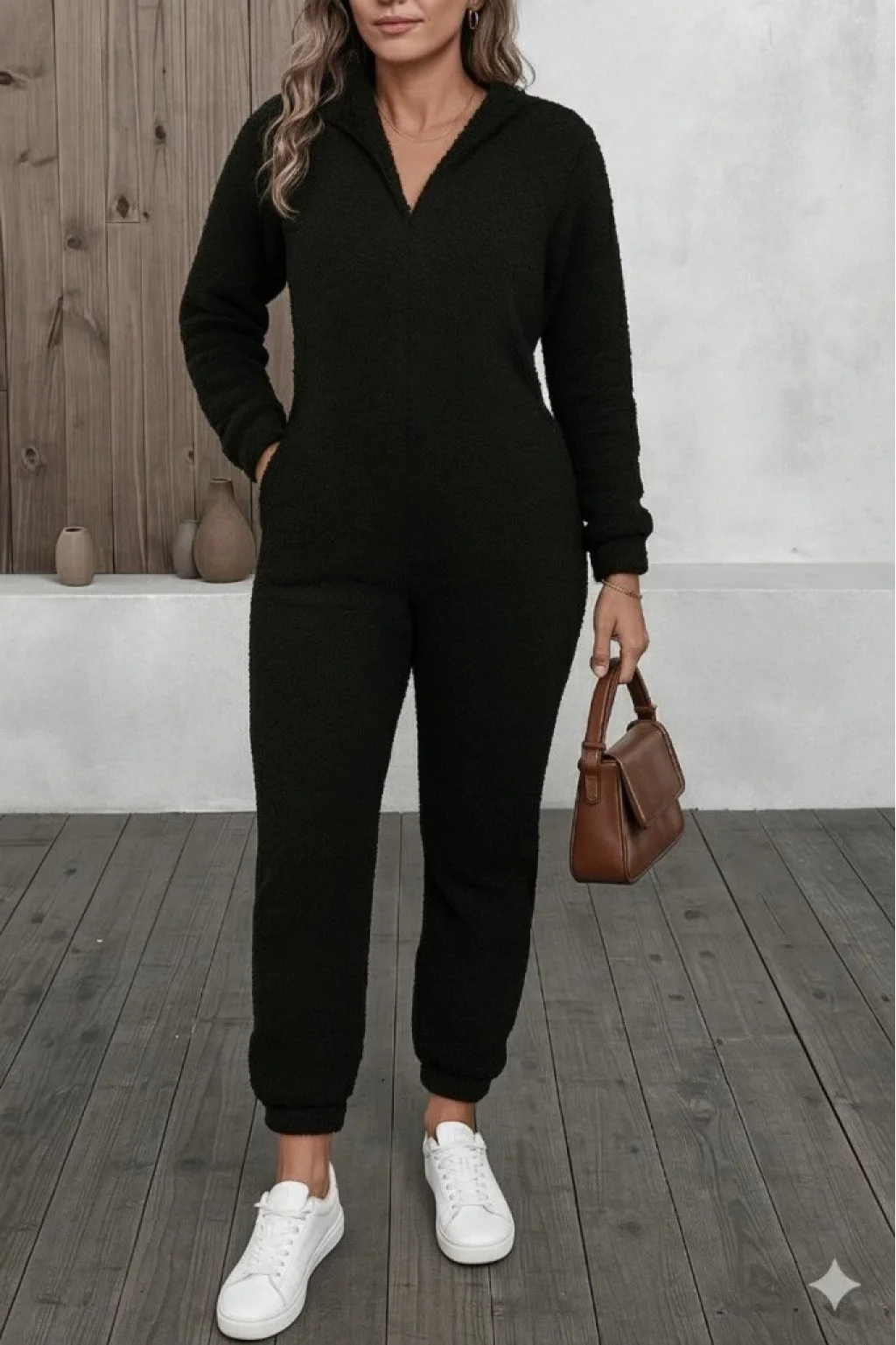 Kadın Uzun Kollu Kapüşonlu Tavşan Kulak Detaylı Peluş Tulum