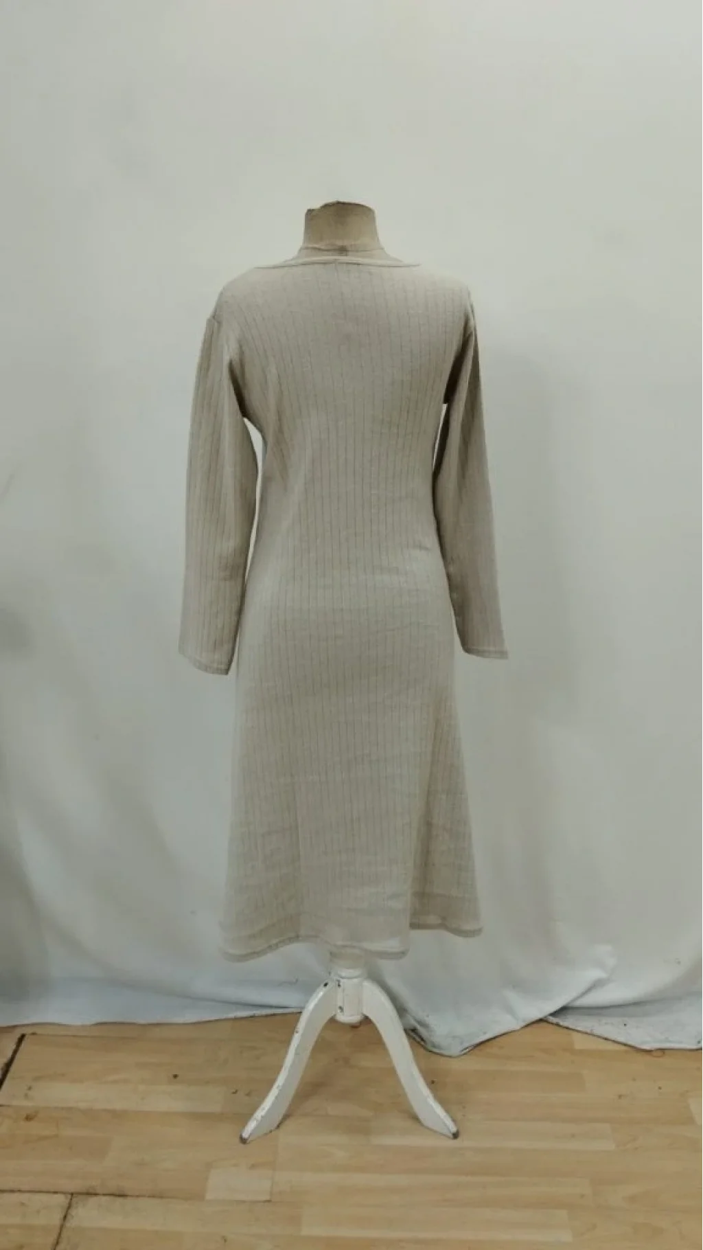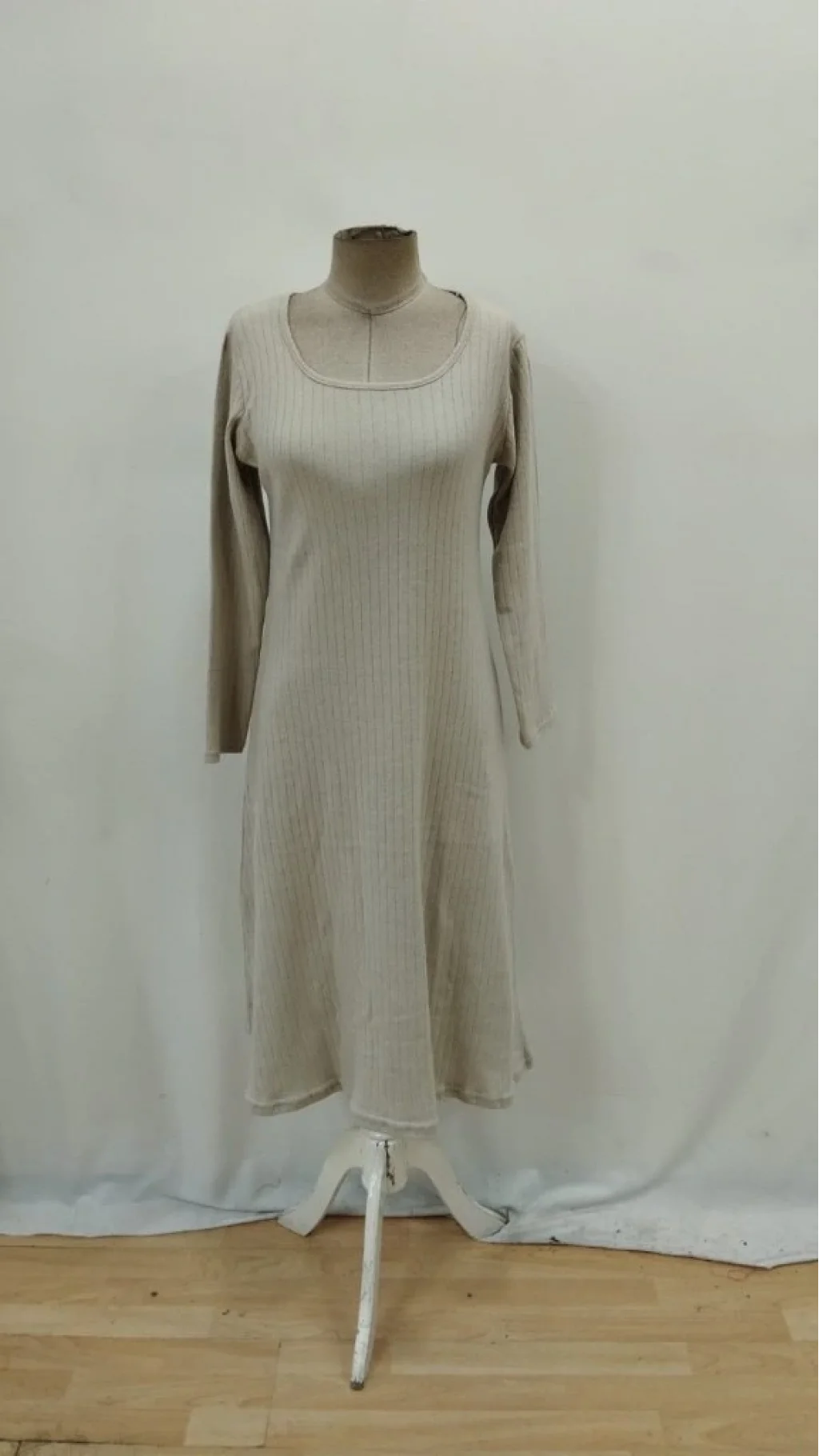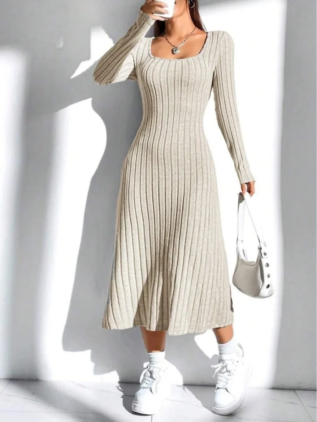 Kadın Uzun Kollu Kare Yaka Midi Kaşkorse Elbise