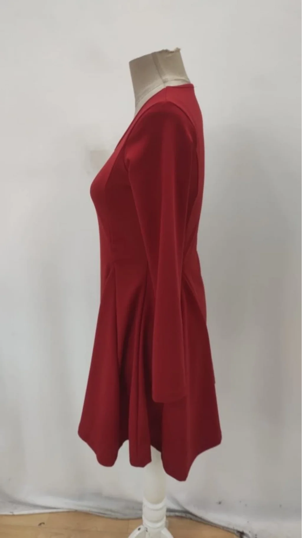 Kadın Uzun Kollu Kare Yakalı Mini Ithal Krep Elbise