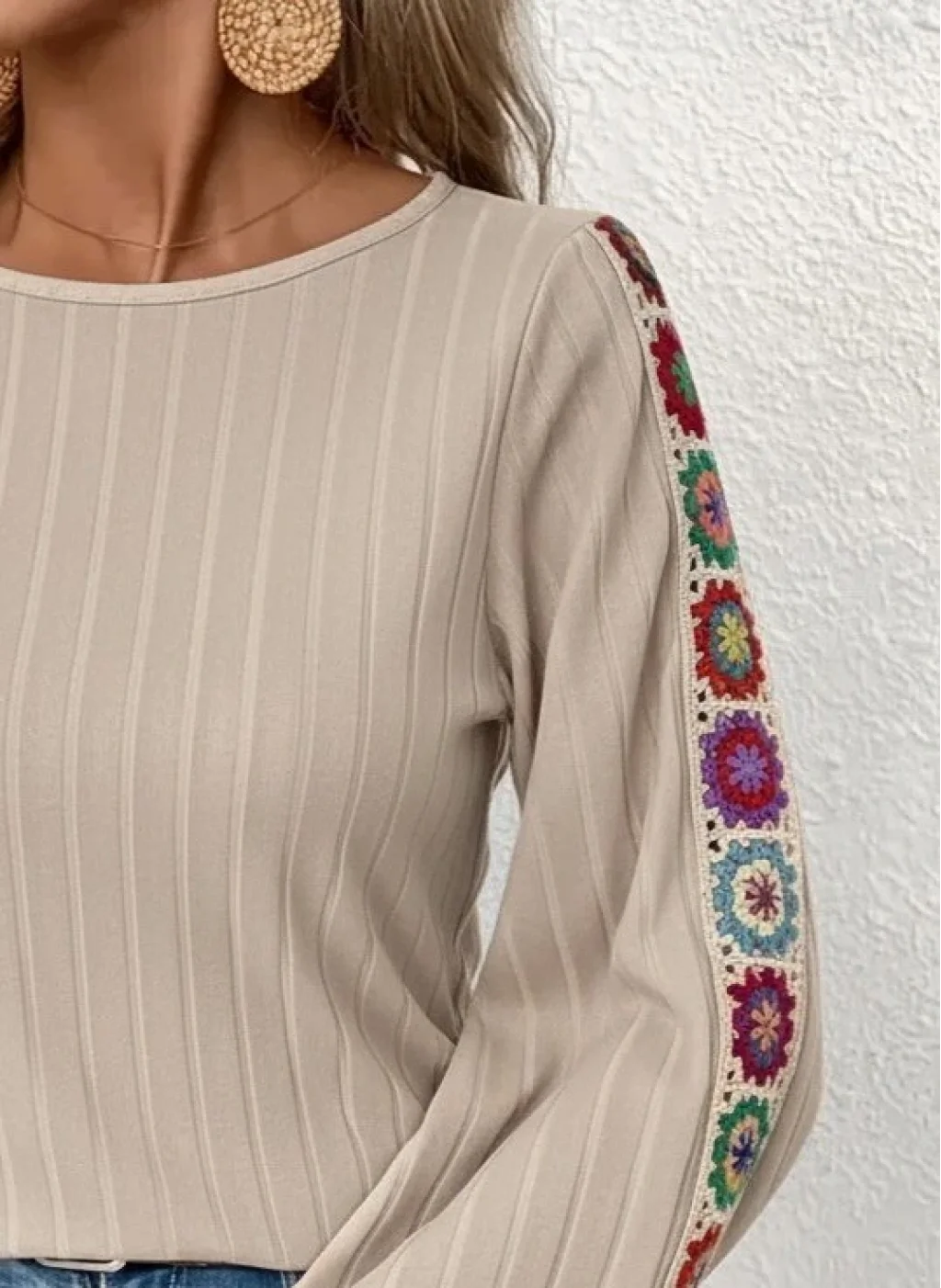 Kadın Uzun Kollu Kayık Yaka şardonlu Kaşkorse Bej Bluz