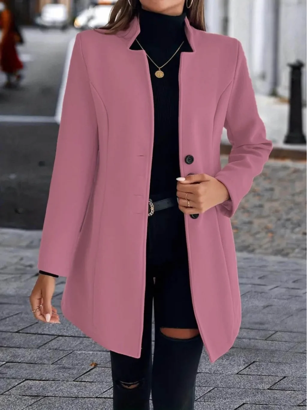 Kadın Uzun Kollu Kırlangıç Yaka önden Düğmeli Kısa Kaşe Kaban