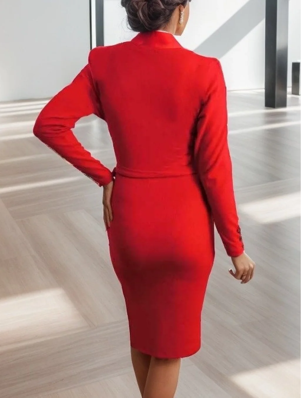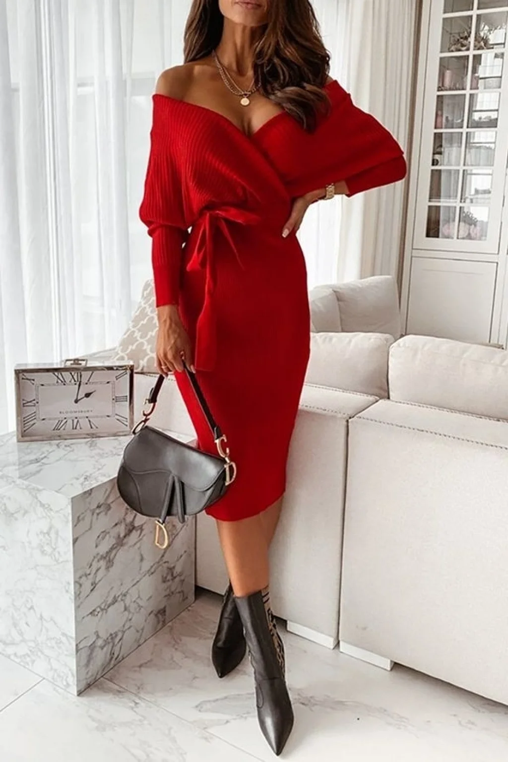 Kadın Uzun Kollu Kruvaze Yaka Bağcık Detay Akrilik Mini Boy Elbise