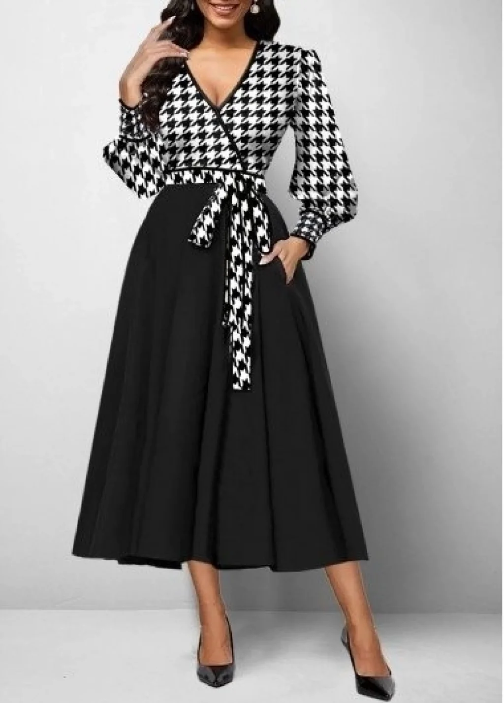 Kadın Uzun Kollu Kruvaze Yaka Dalgıç Krep Midi Boy Elbise