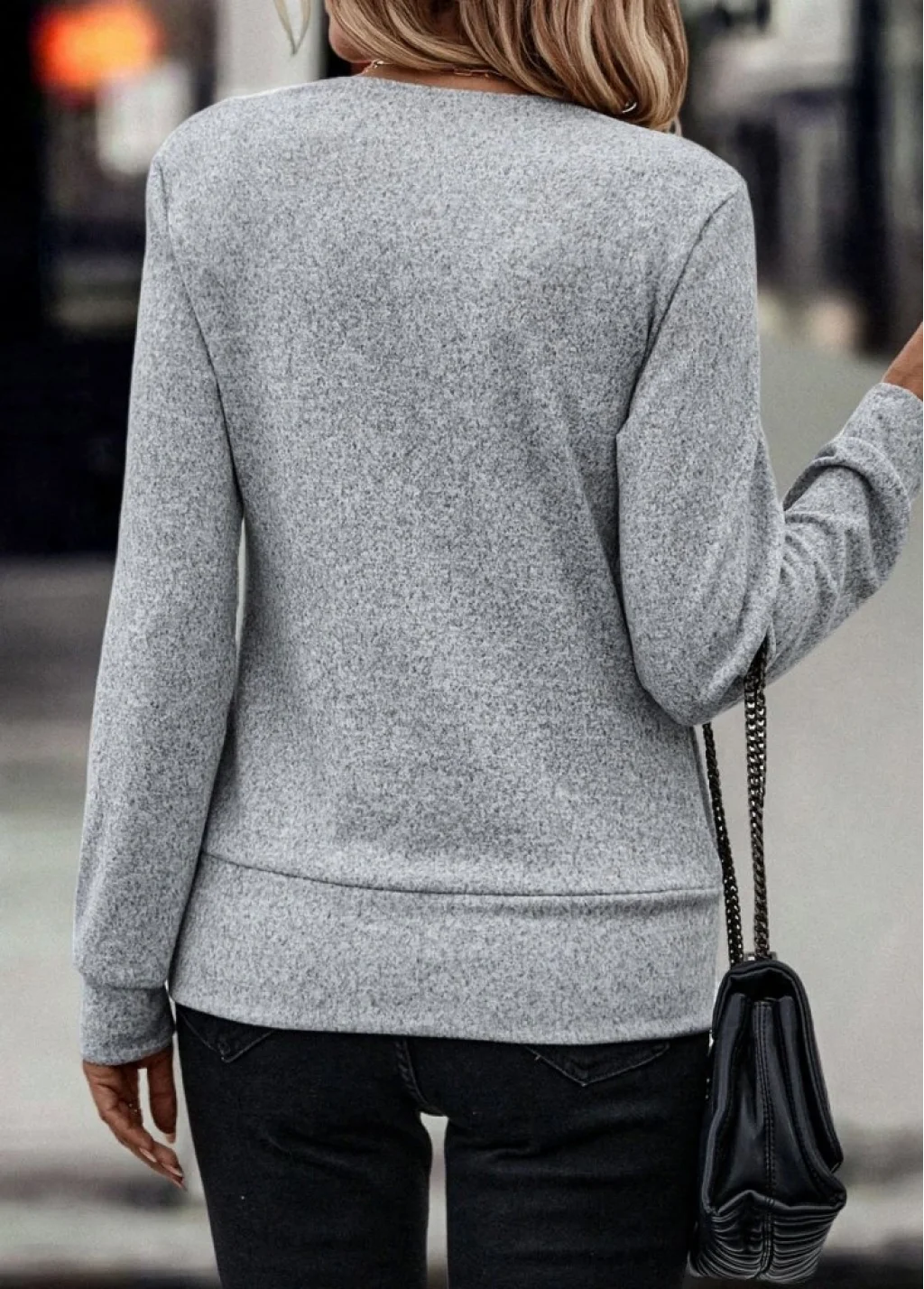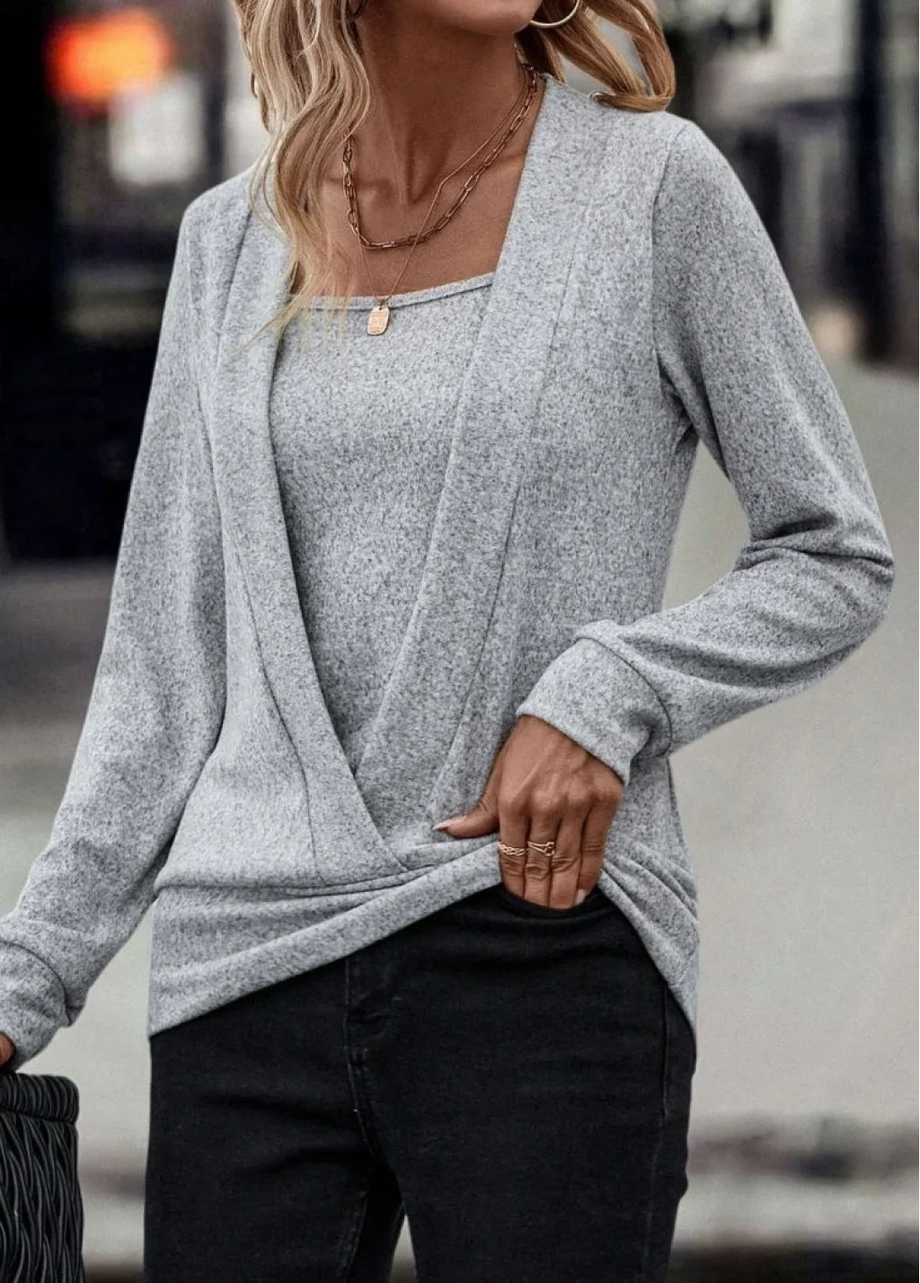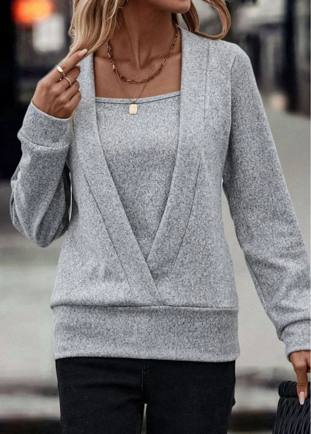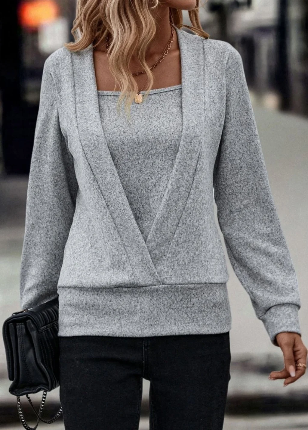 Kadın Uzun Kollu Kruvaze Yaka Kol Ve Etek Ucu Manşet Detay Yumoş Bluz