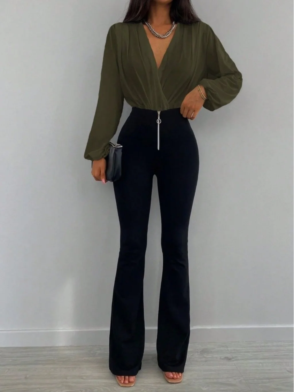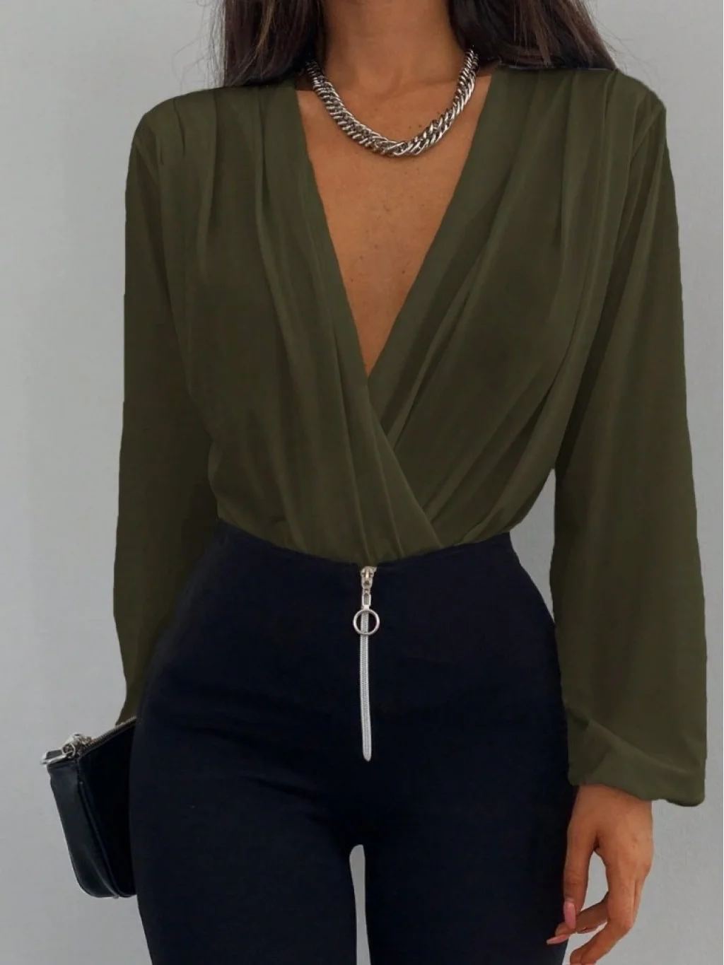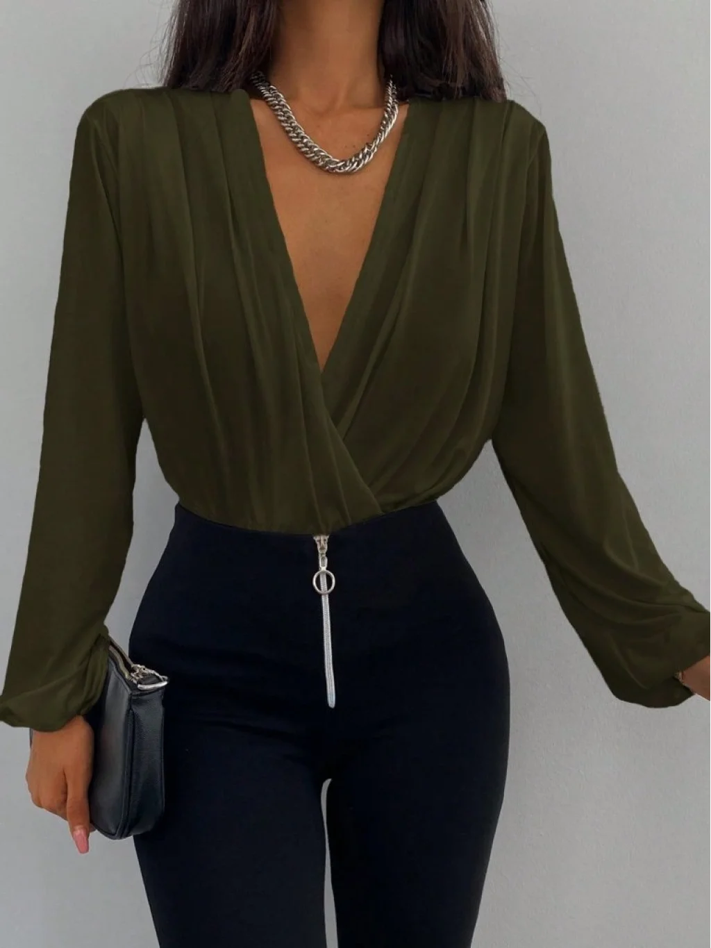 Kadın Uzun Kollu Kruvaze Yaka Sandy Bluz