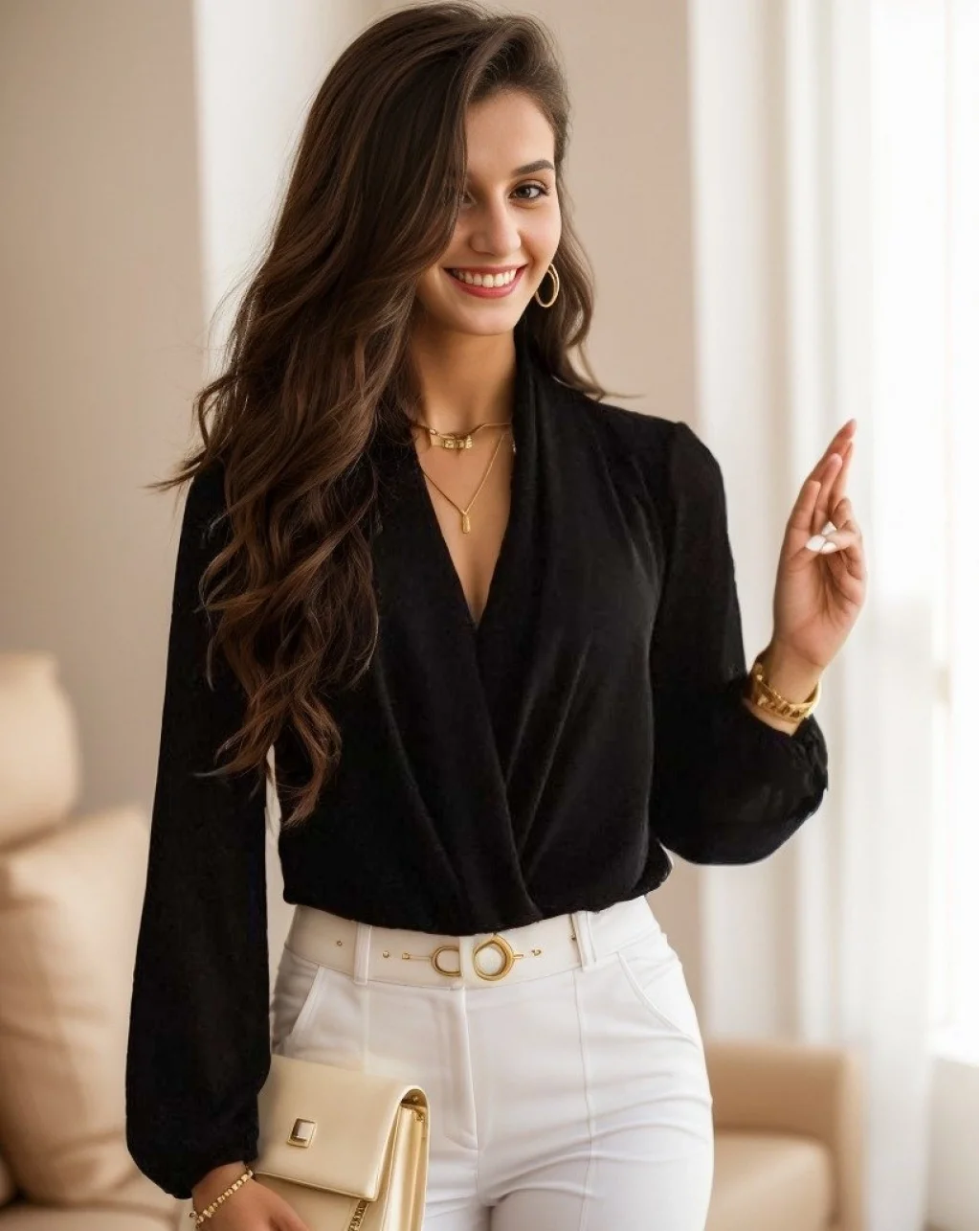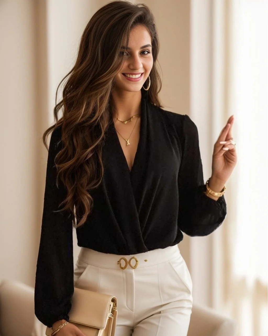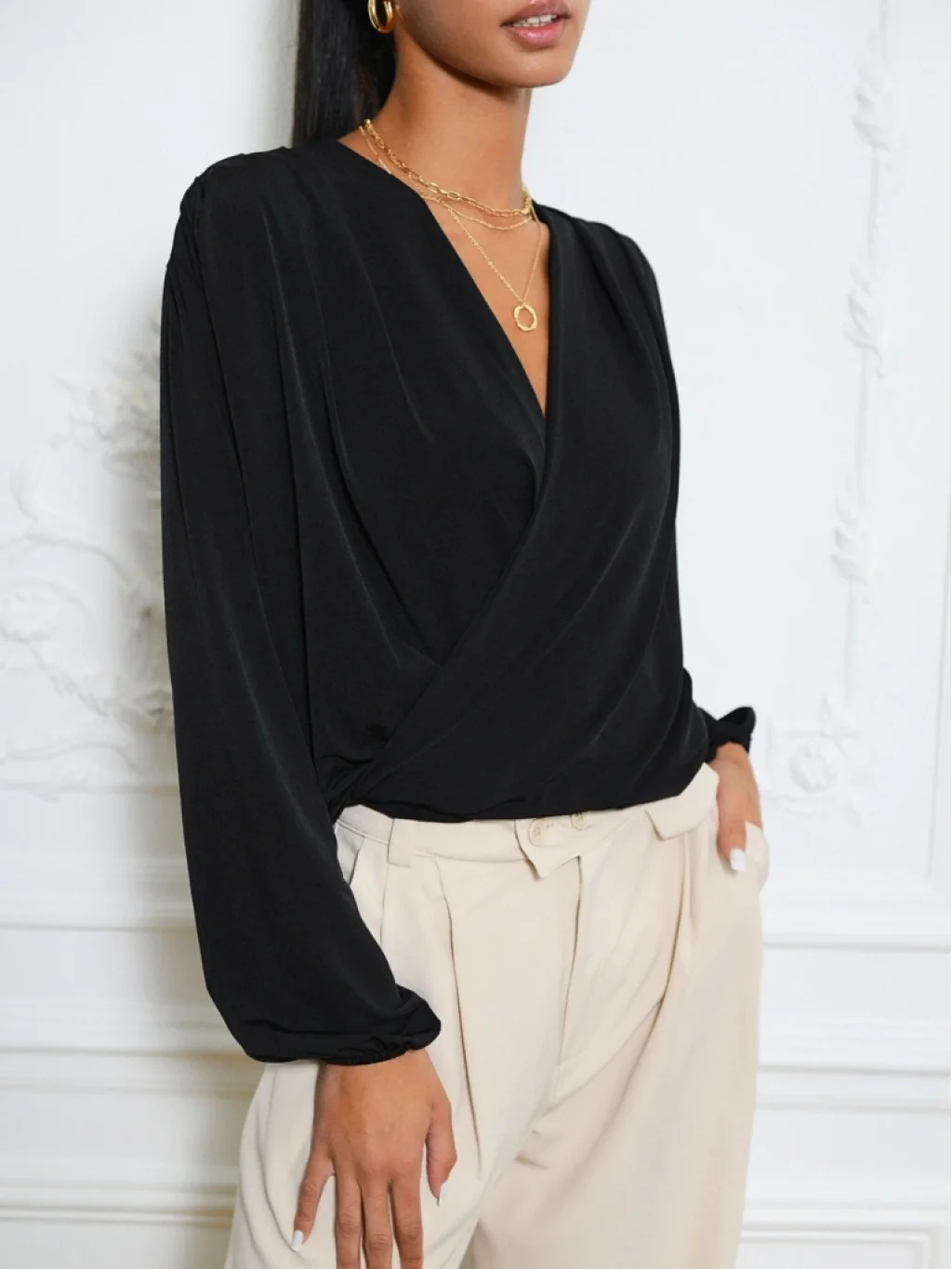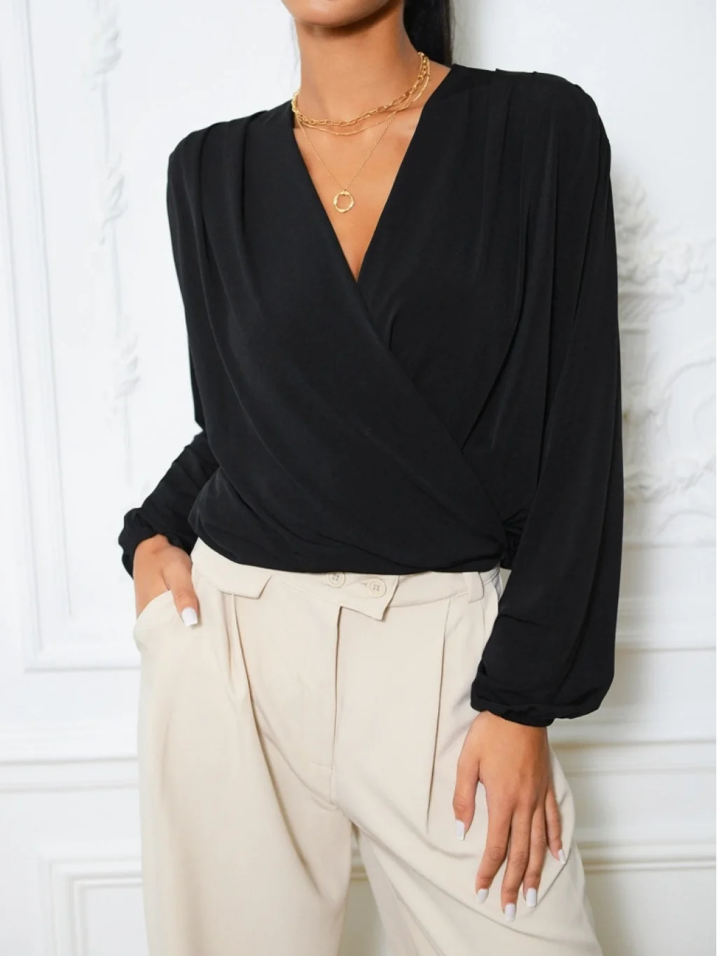 Kadın Uzun Kollu Kruvaze Yaka Sandy Bluz