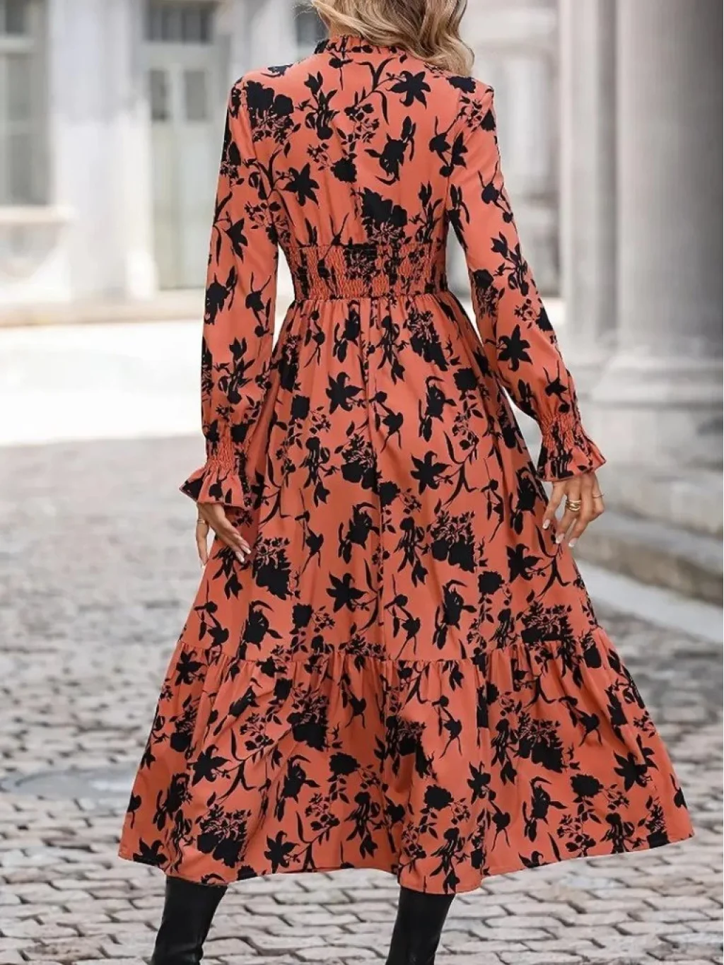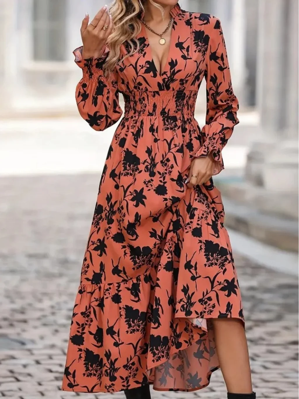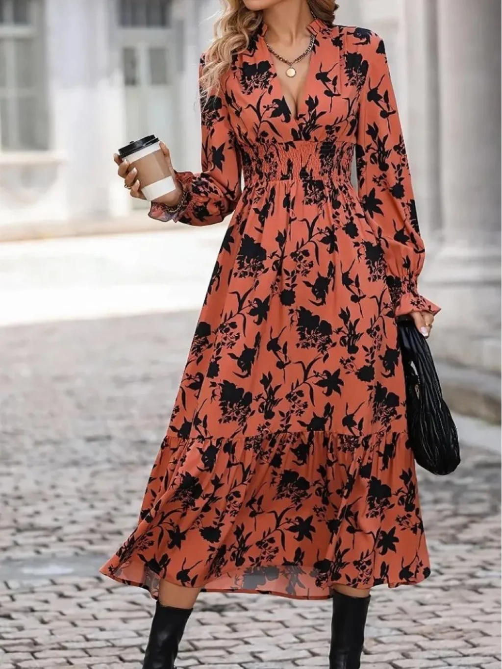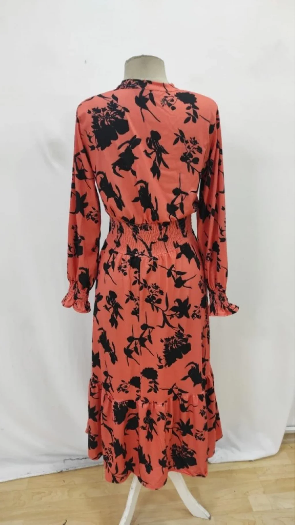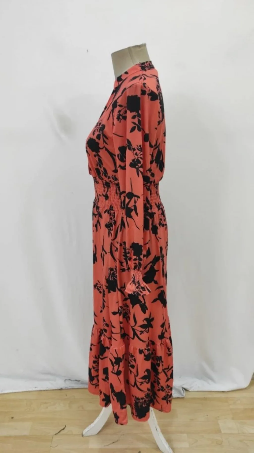 Kadın Uzun Kollu Kruvaze Yakalı çiçek Desenli Maksi Süprem Elbise