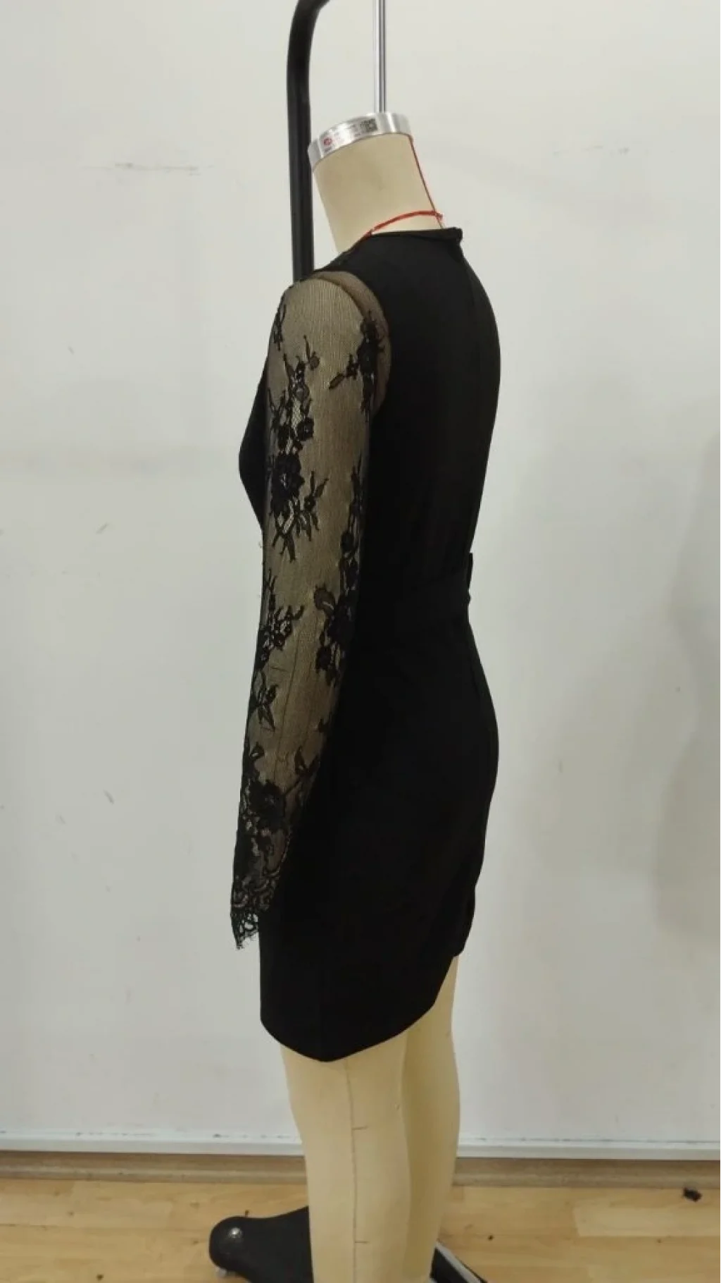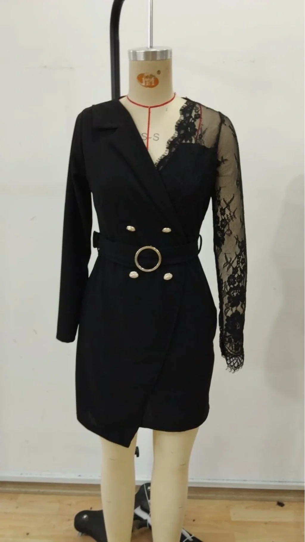 Kadın Uzun Kollu Kruvaze Yakalı önden Düğmeli Kısa Ithal Krep Elbise