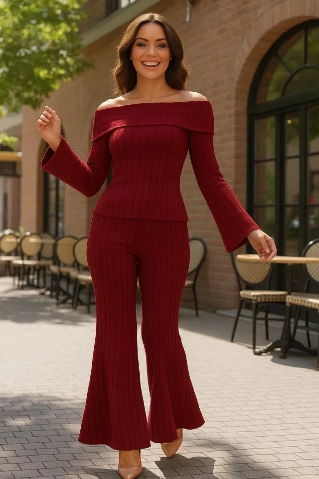 Kadın Uzun Kollu Madonna Döküm Yaka Bluz Ve Pantolon Ikili Takim