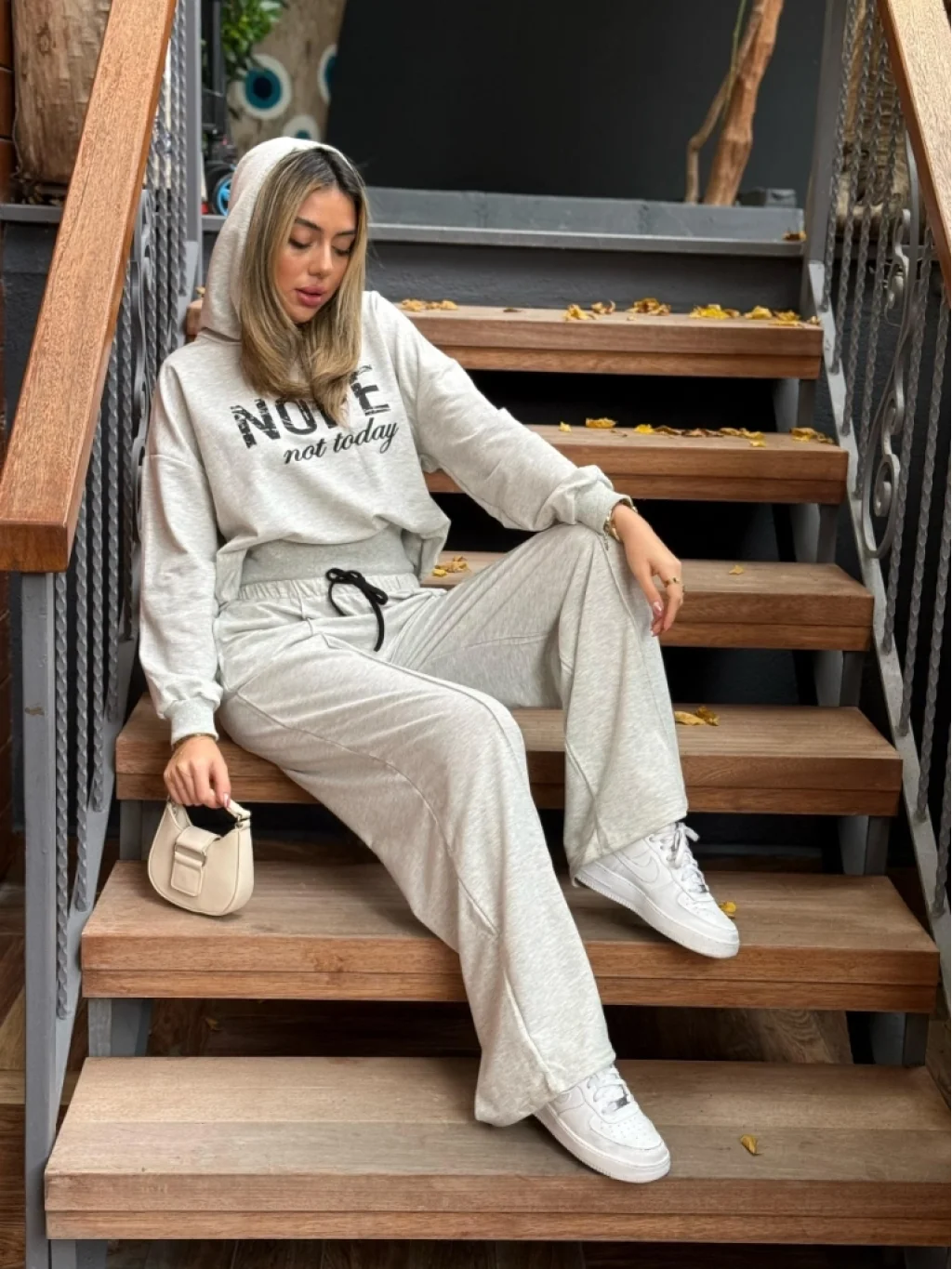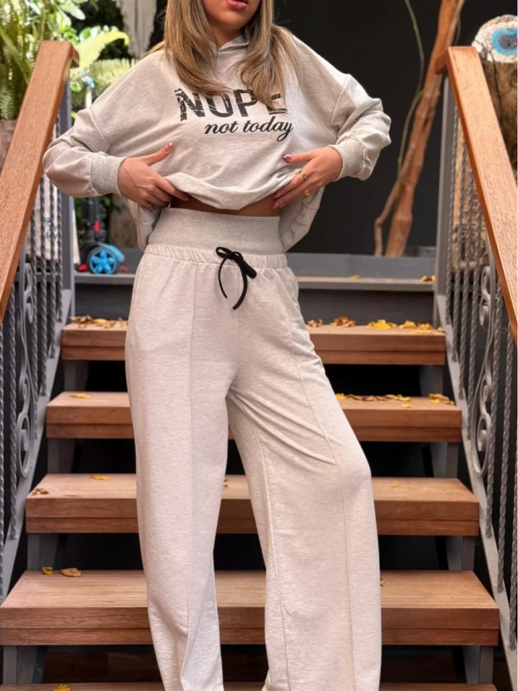 Kadın Uzun Kollu Nope Baskılı Beli Ribanalı Ikili Takım