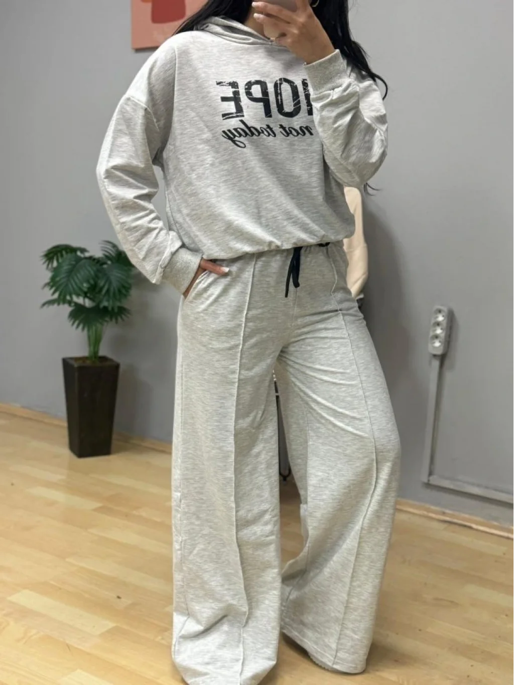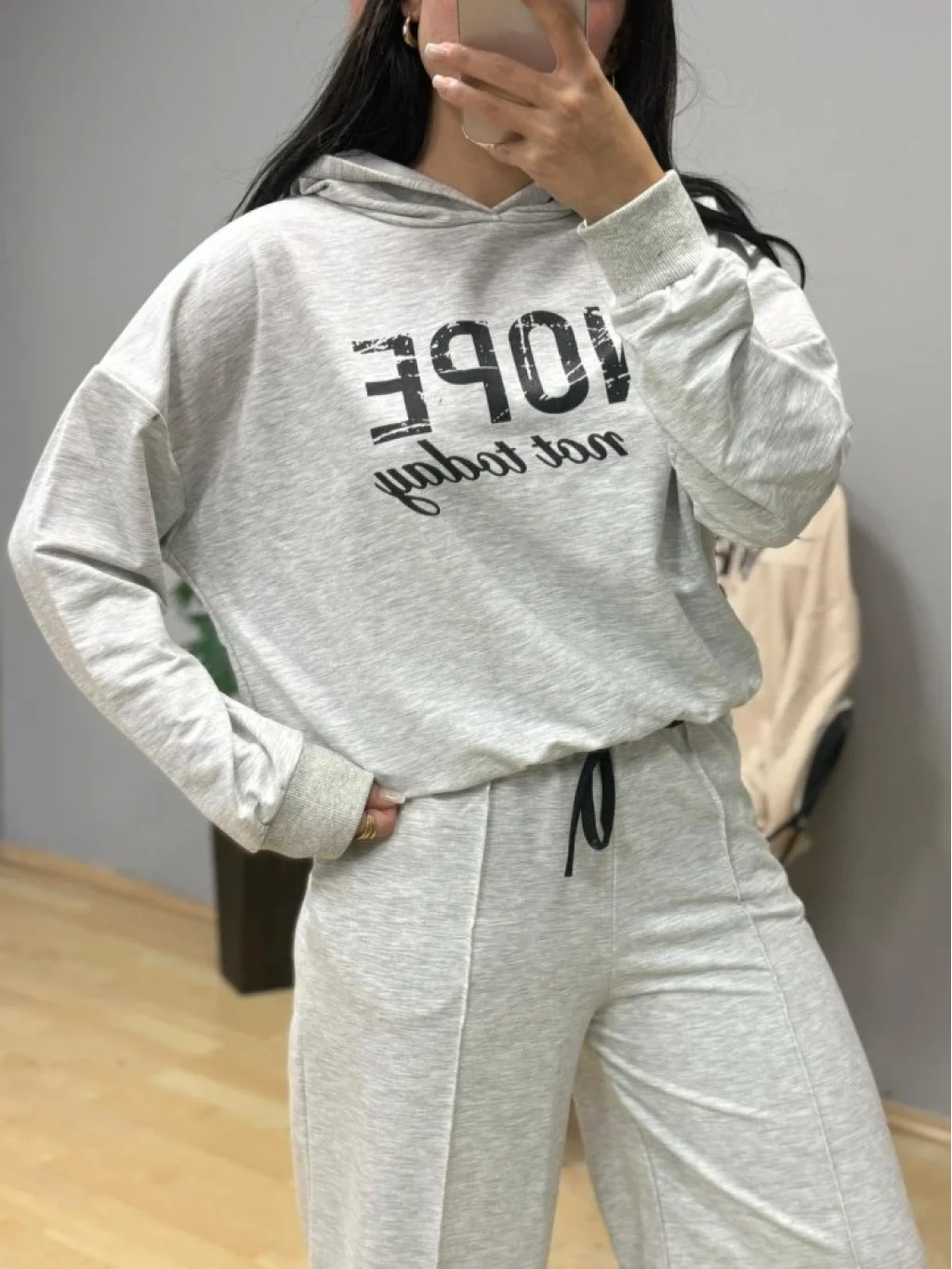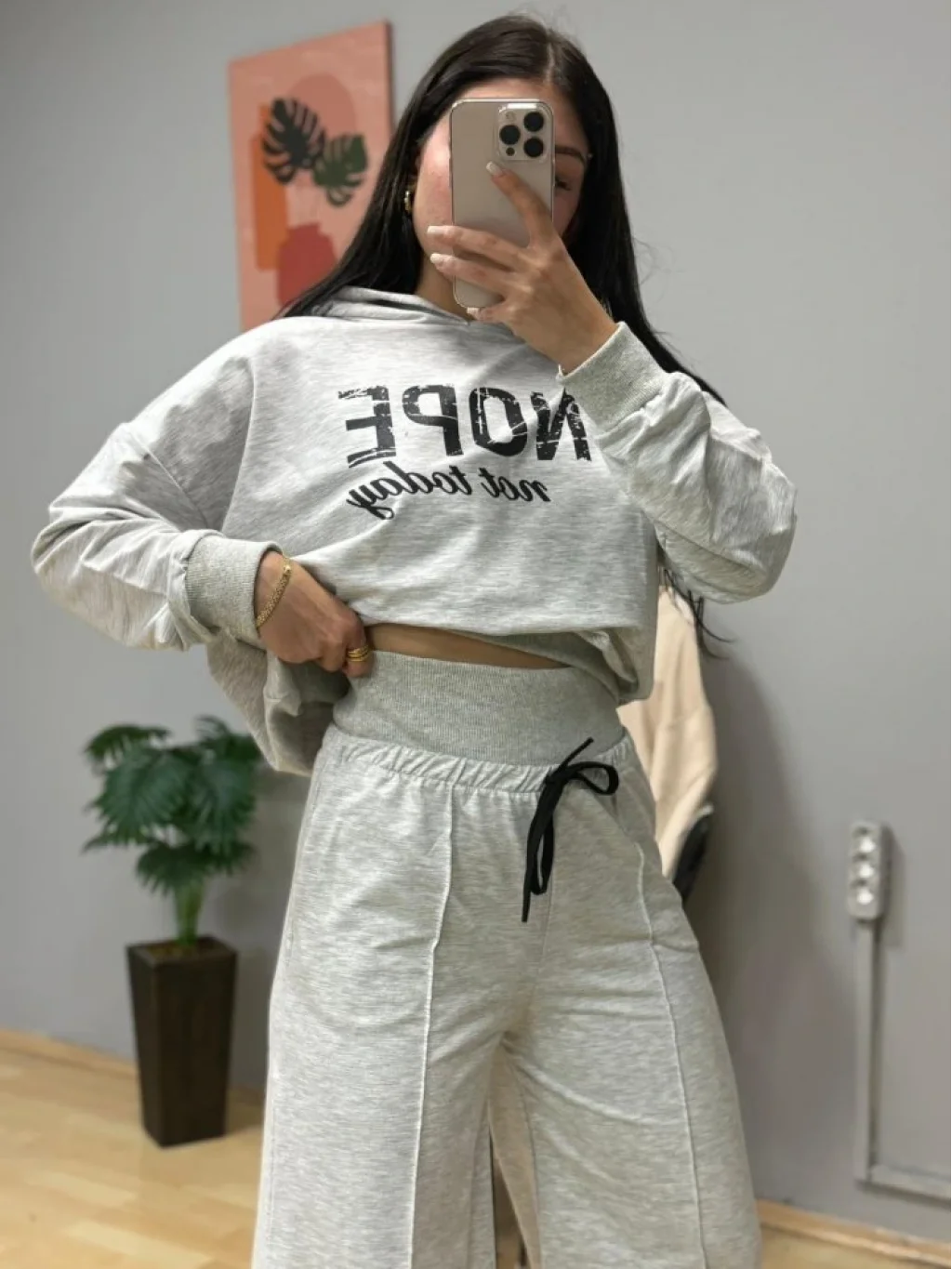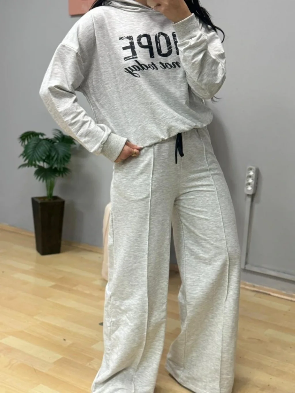 Kadın Uzun Kollu Nope Baskılı Beli Ribanalı Ikili Takım