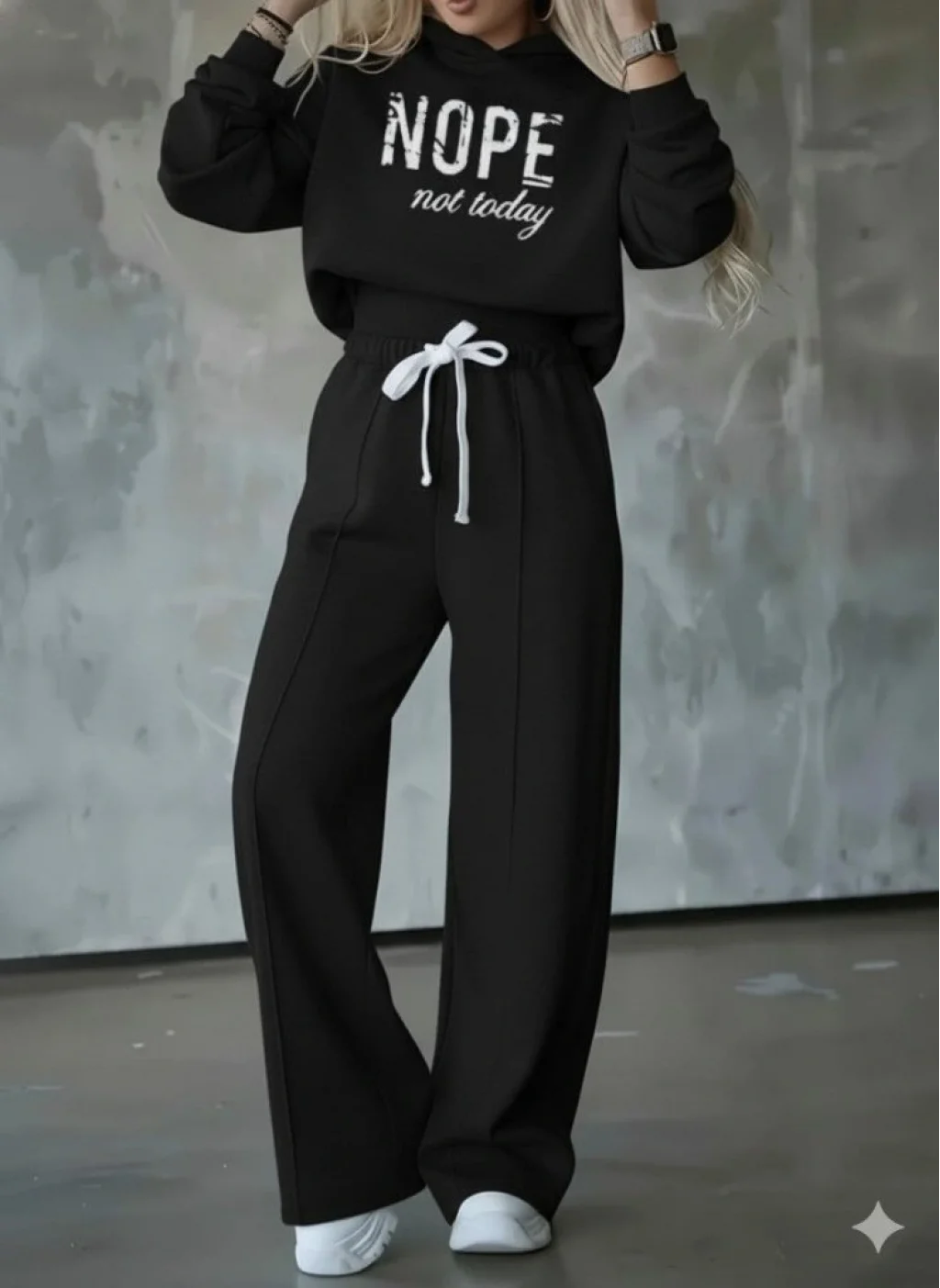 Kadın Uzun Kollu Nope Baskılı Beli Ribanalı Ikili Takım