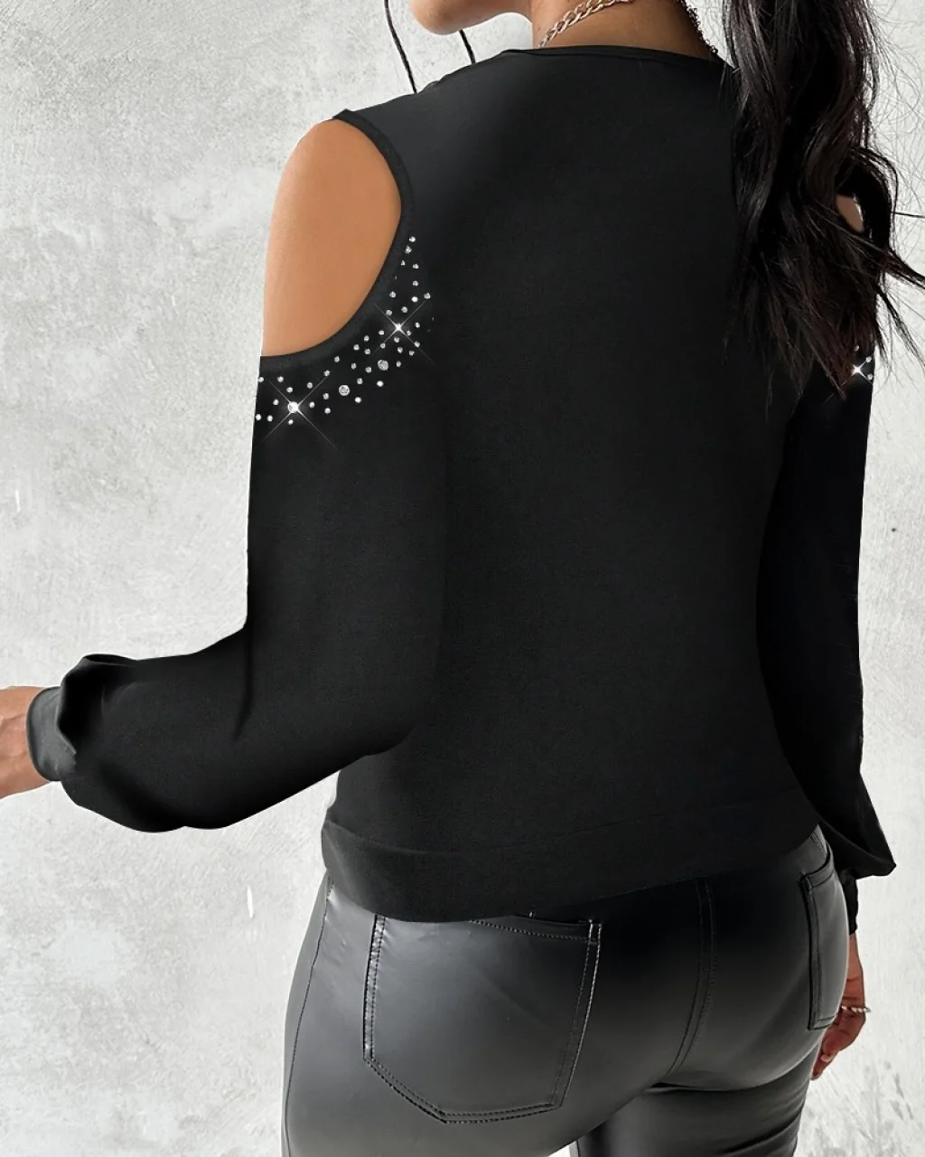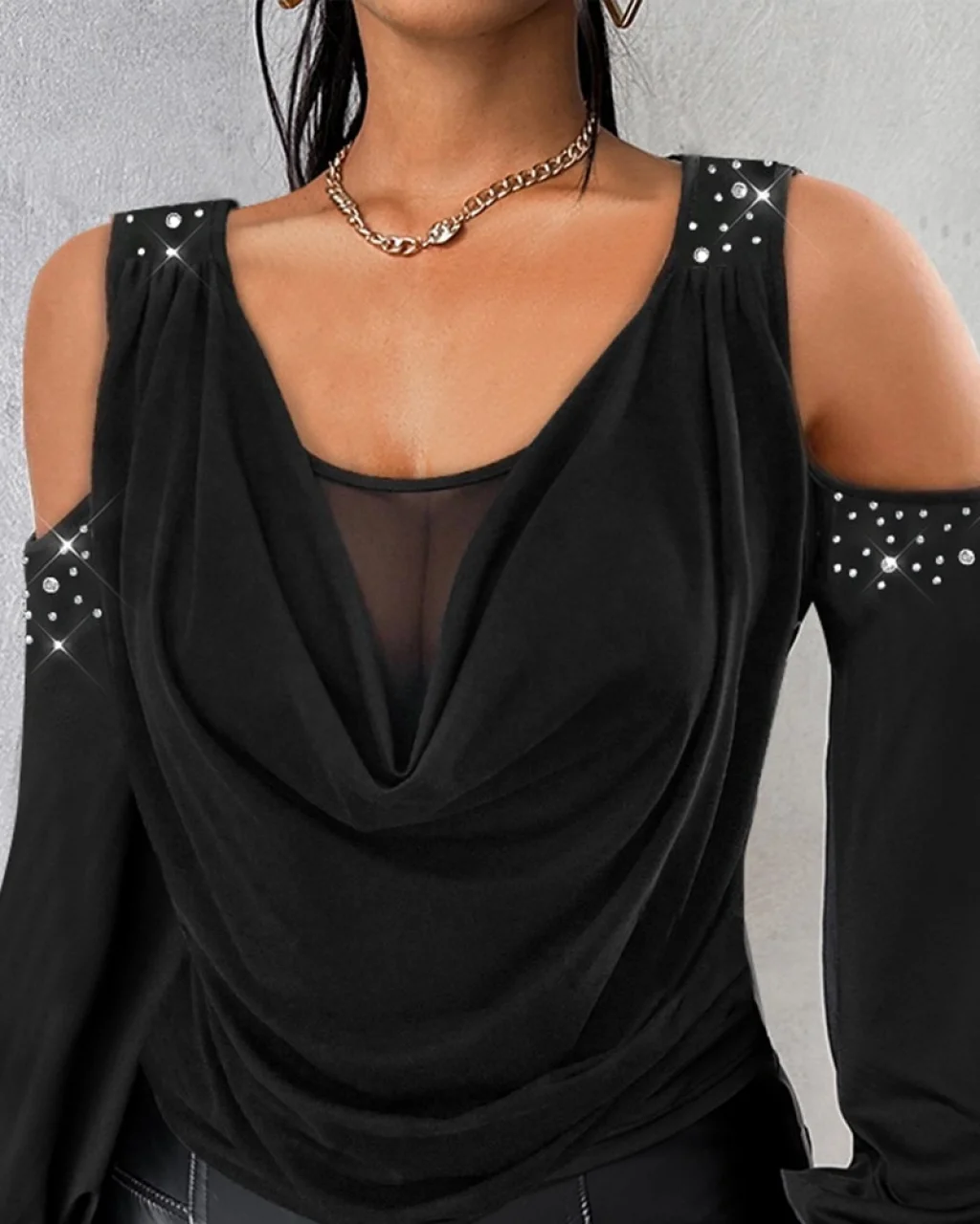 Kadın Uzun Kollu Omuz Dekolte Ve Taş Detaylı Degaje Tüllü Yaka Sandy Bluz