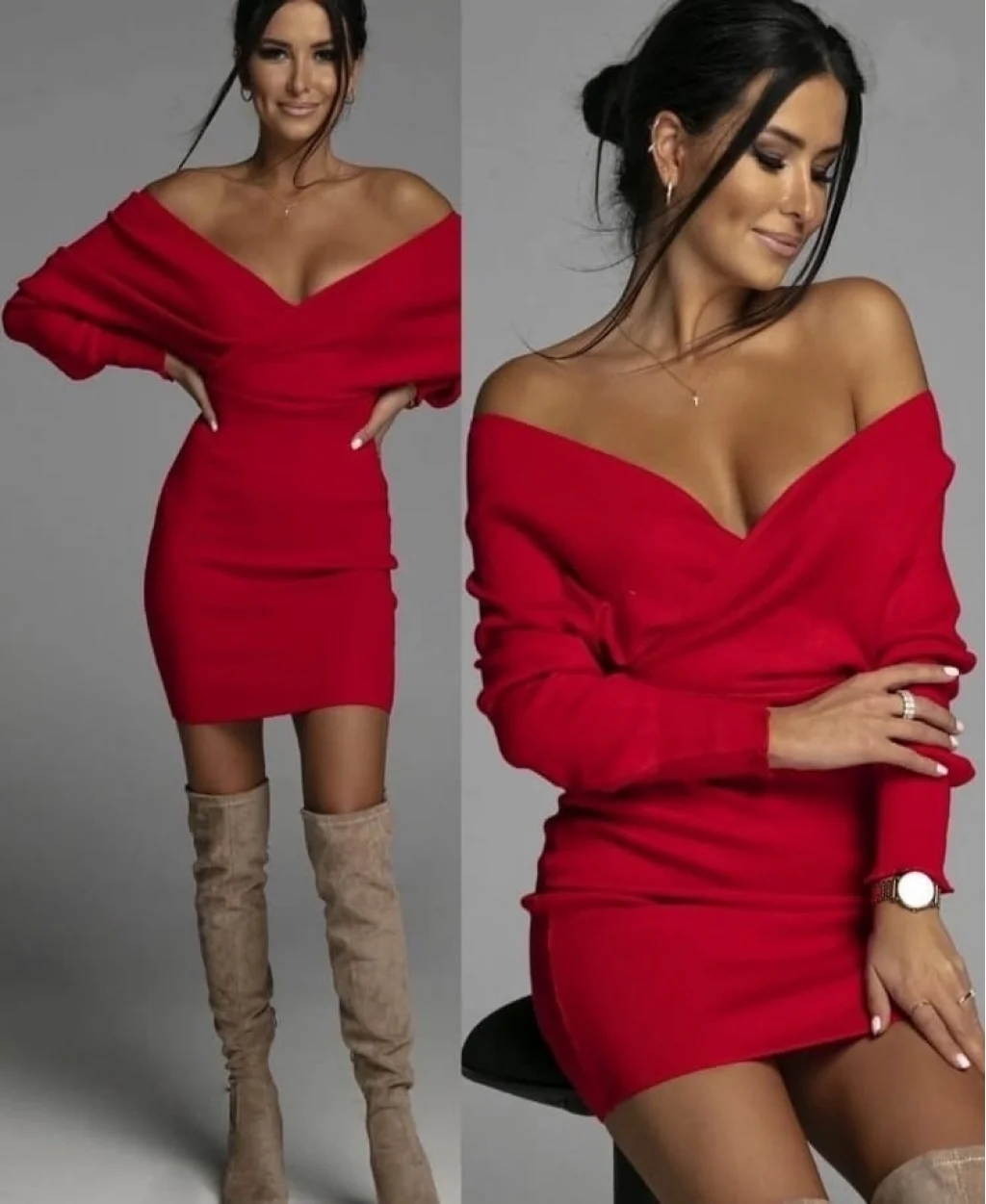 Kadın Uzun Kollu Omuzlar Açık Detay Triko Elbise