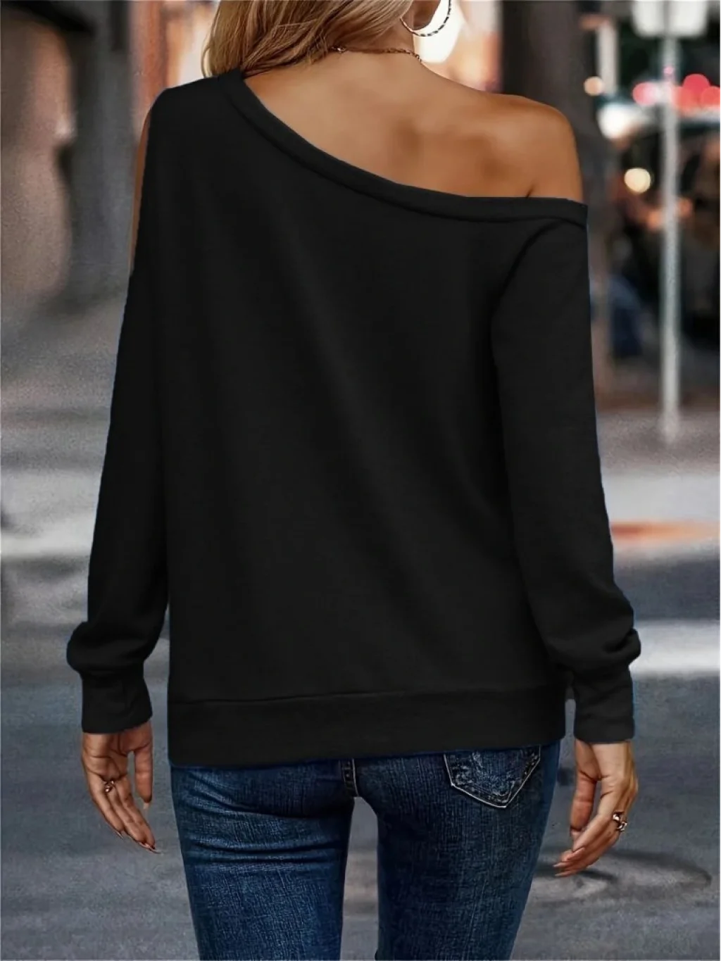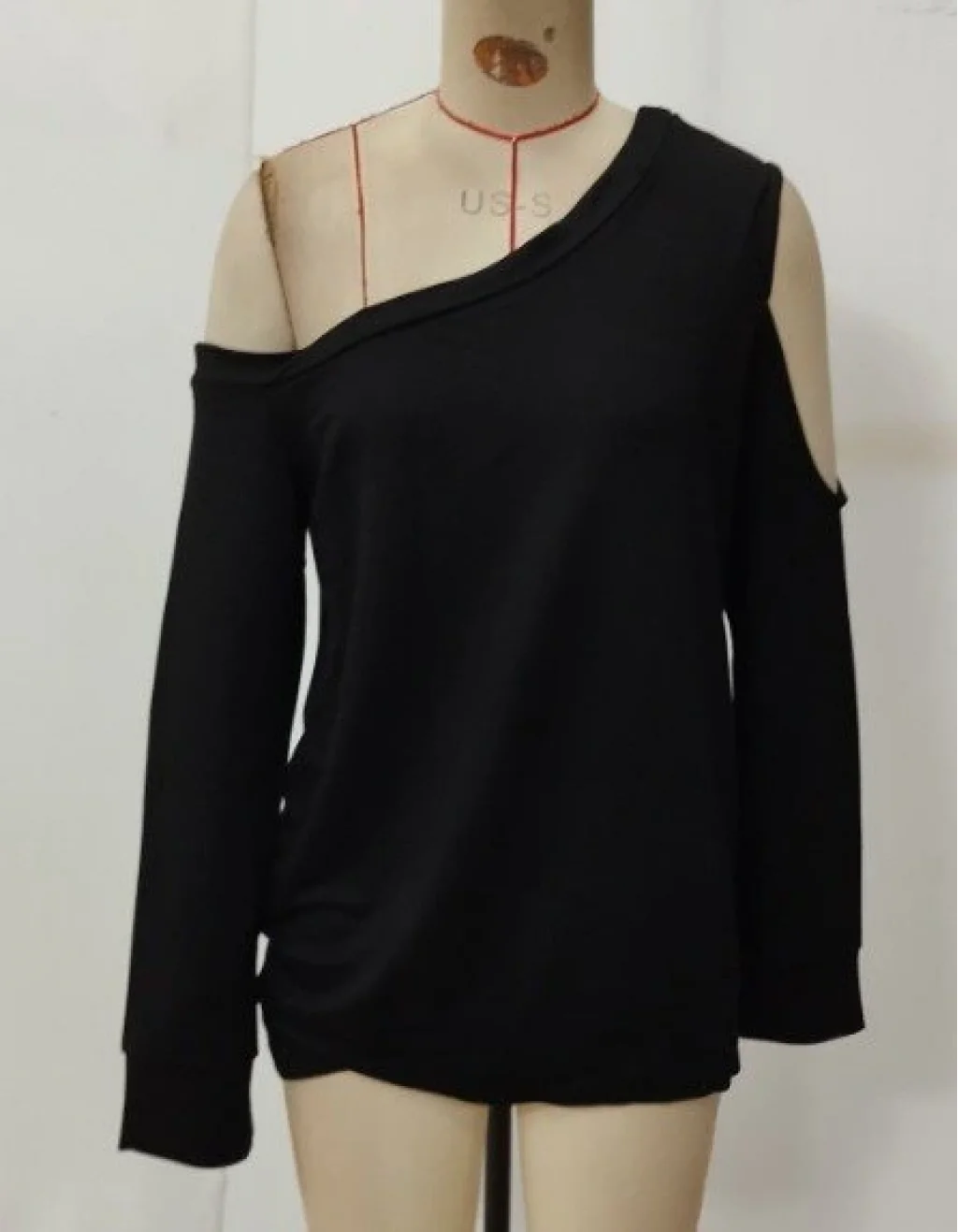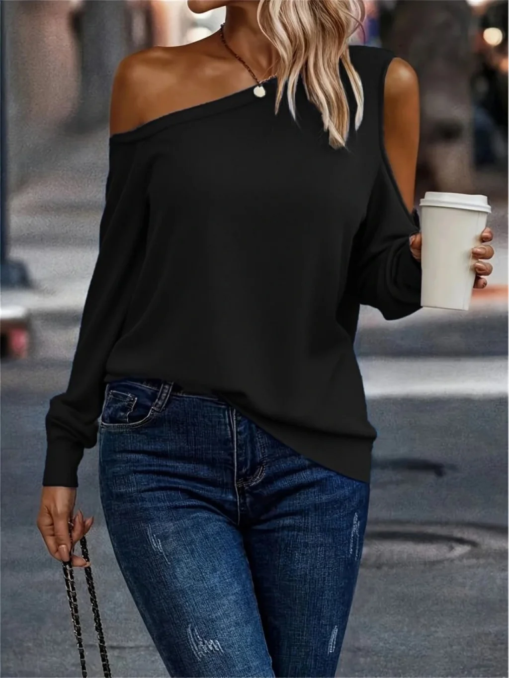 Kadın Uzun Kollu Omuzlardan Açık Salaş Viskon Iki Iplik Bluz