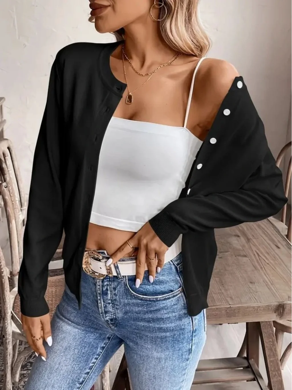 Kadın Uzun Kollu önden Düğmeli Triko Ceket