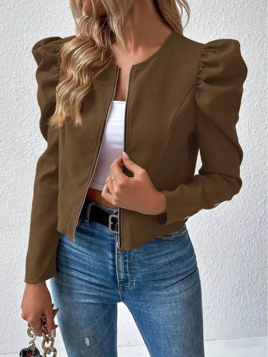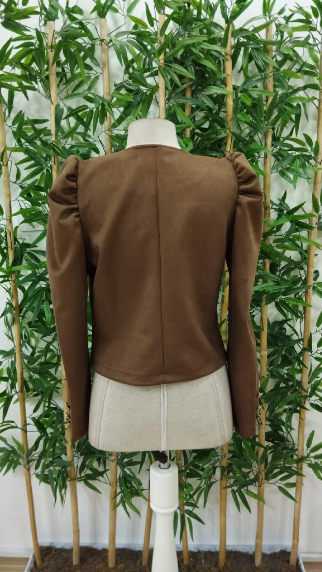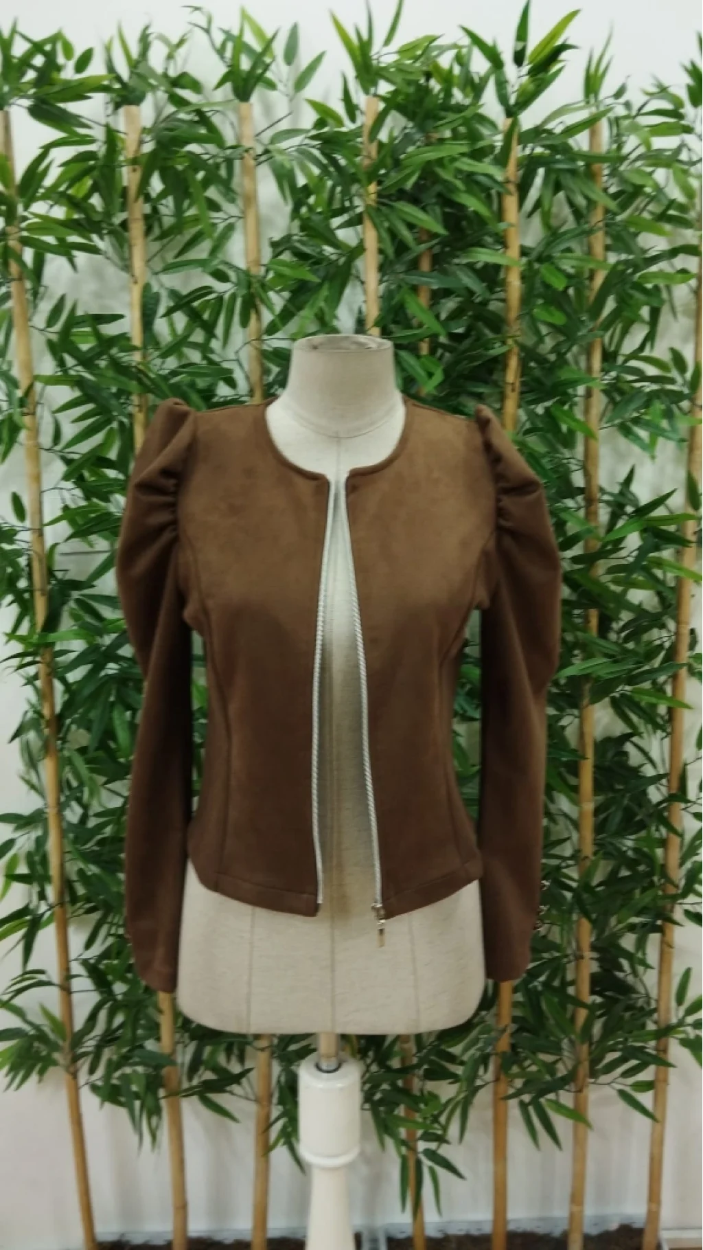 Kadın Uzun Kollu önden Fermuarlı Balon Kol Süet Ceket